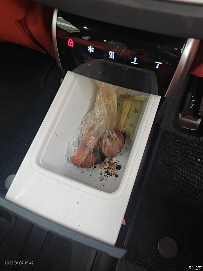 4.副驾没有手套箱,储物空间不够,中控下镂空的格子很鸡肋,放点东西就掉出来,还不如像特斯拉Y一样做个上面打开的大储物格。