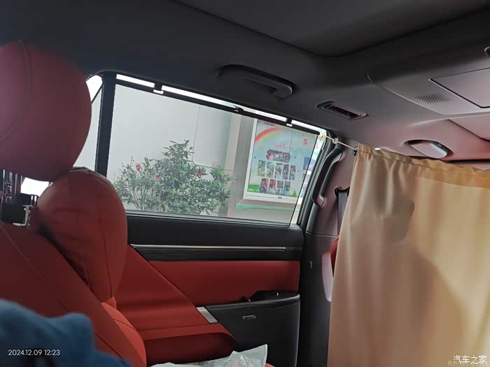 中午还可以在车里午睡,副驾后面二排放倒,腿托升起来,窗户遮阳挡升起来,躺平睡真是太舒服了,还可以在中间加个帘子,在里面干啥都可以。