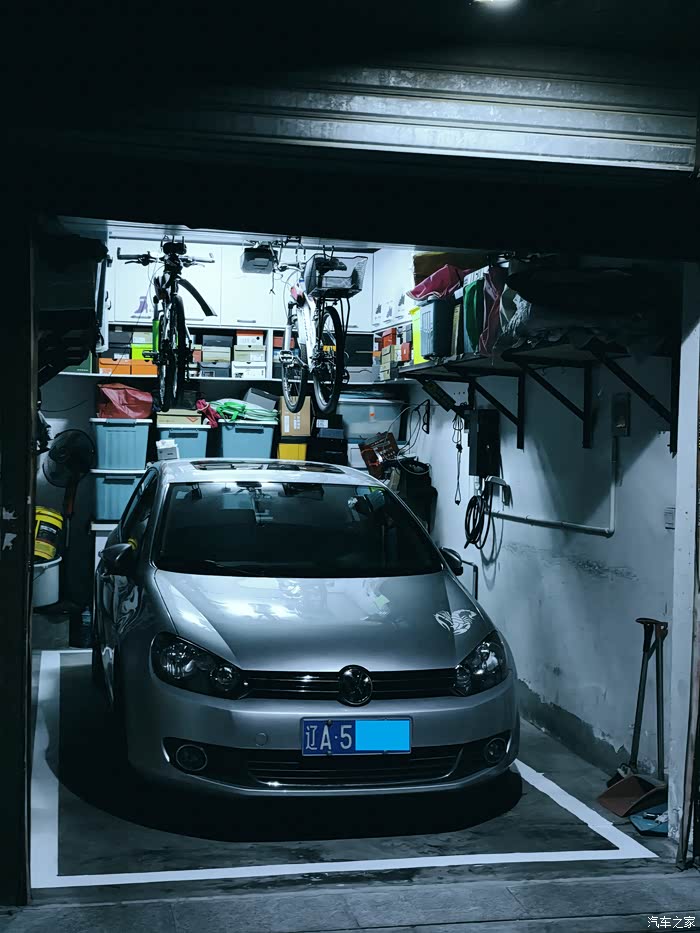 先上一个地上车库的图片,14年前购车时,选购了一辆两厢车,就是因为车库过于狭窄,后部还打了一排储物柜,而且带门框,无法容纳长度超过5米的SUV泊入。