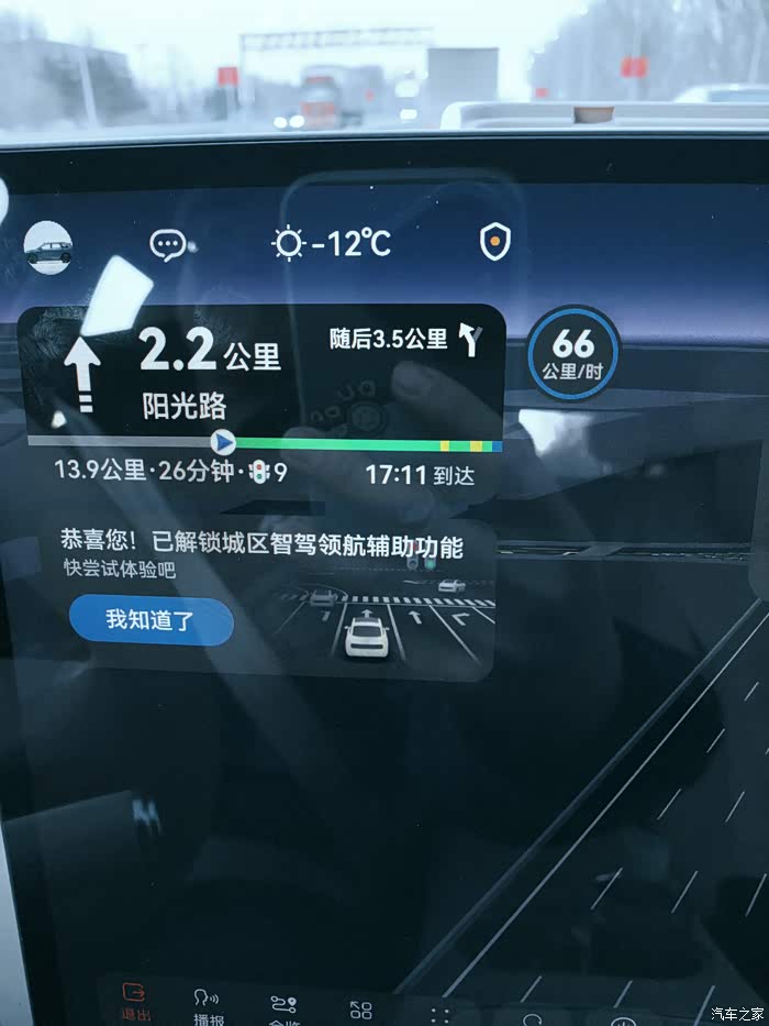 今天在快速路上,LCC(车道保持)刚好达到了100公里,解锁了智驾领航功能。