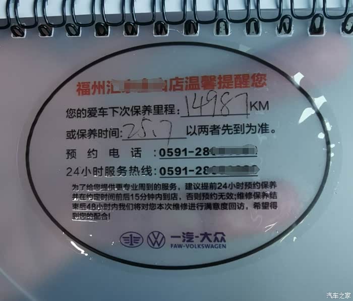 做好保养,给的二保提醒标签上面写的是一万公里或一年后,看来这家4S还是比较良心的,不坑人,至少是没忽悠我。