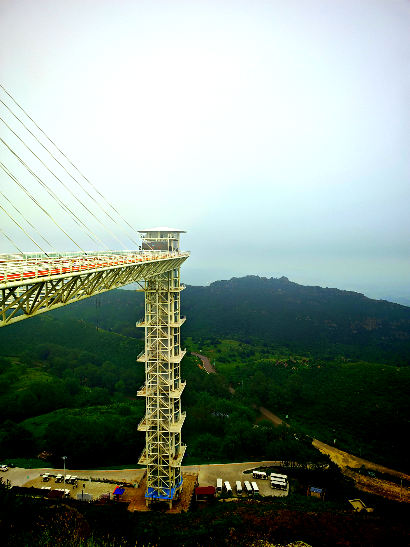 走过玻璃栈道,乘坐高度五十多米的观光电梯