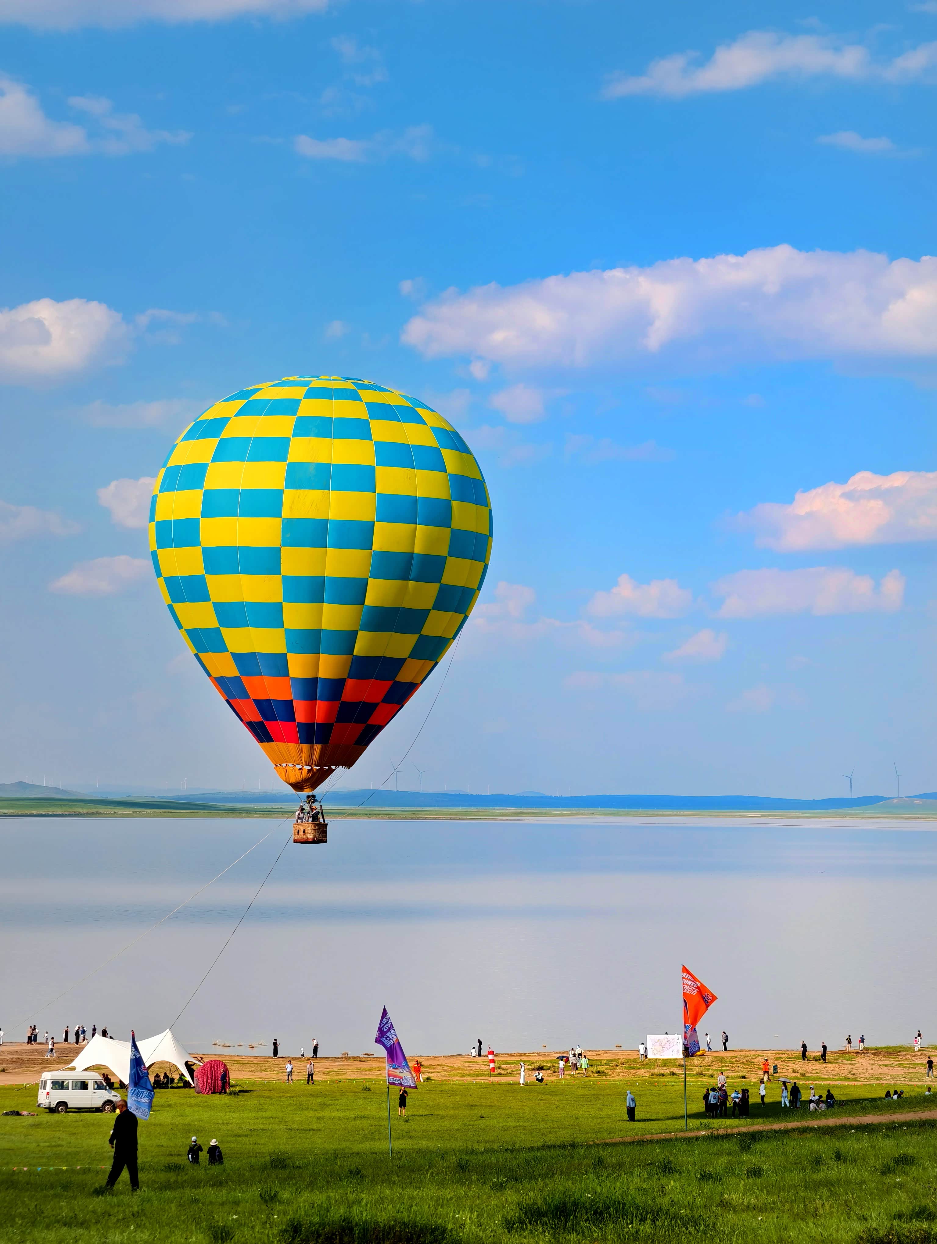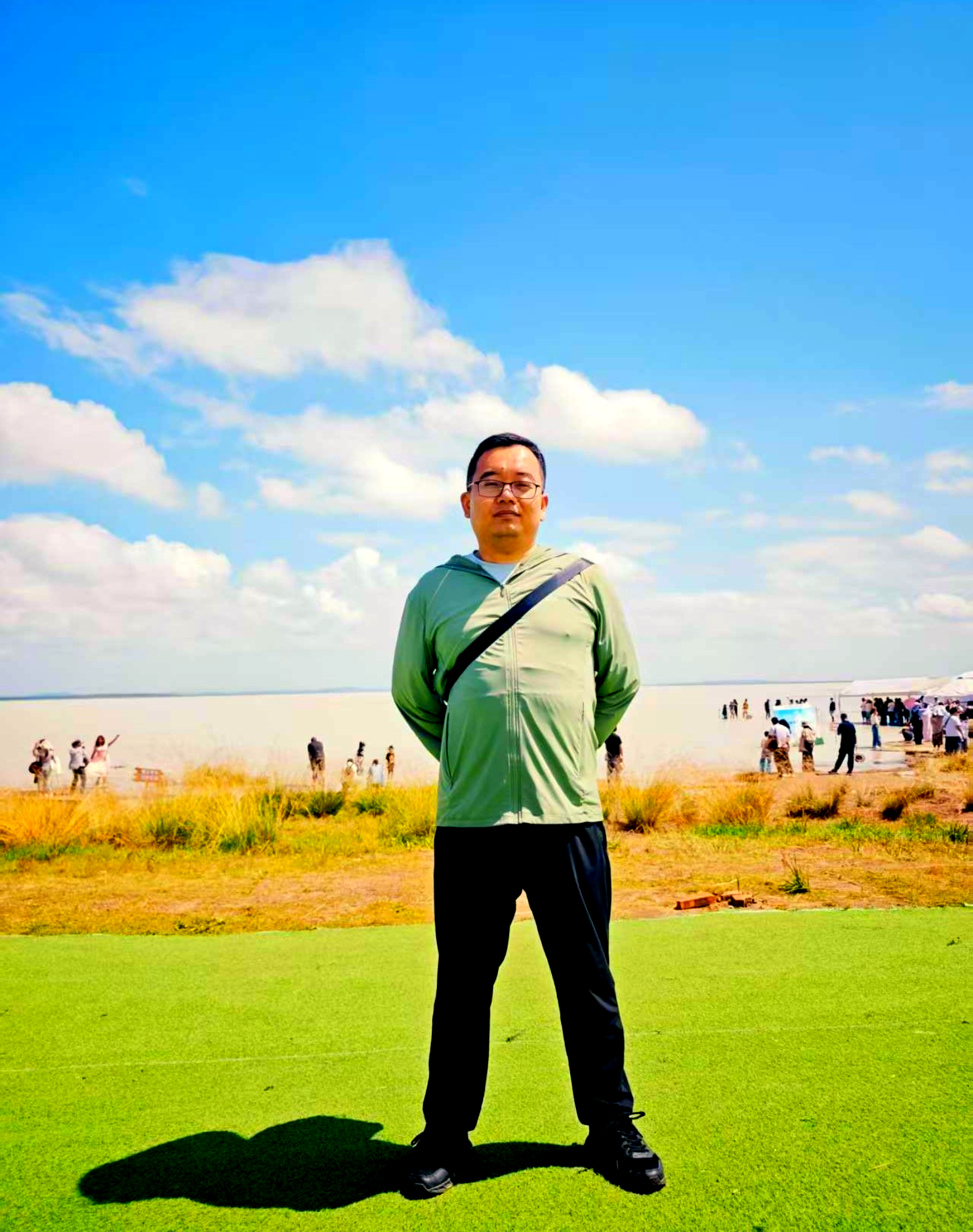 牛奶湖的湖水细看可以发现其中悬浮着许多细小的白色颗粒。听附近的工作人员介绍,牛奶湖本名白音查干湖(蒙古语意为“白色的湖”),是一座天然的碱水湖。由于长期的地质变迁,湖底沉积了大量碳酸钙等矿物颗粒,经湖水流动或风力搅动后悬浮于水中,在阳光的散射下便呈现出温润的奶白色。正因如此,当地牧民亲切地称之为“牛奶湖”。湖水虽然看起来像牛奶一样浓稠,但捧在手里却十分清澈,只是泛着淡淡的乳白色。真的有一些游客好奇地尝了尝湖水,然后面露出尴尬的表情,哈哈,其实盐碱水又咸又涩!大家短视频里看到的接牛奶湖的水喝,其实是埋在地下的奶罐里的牛奶!