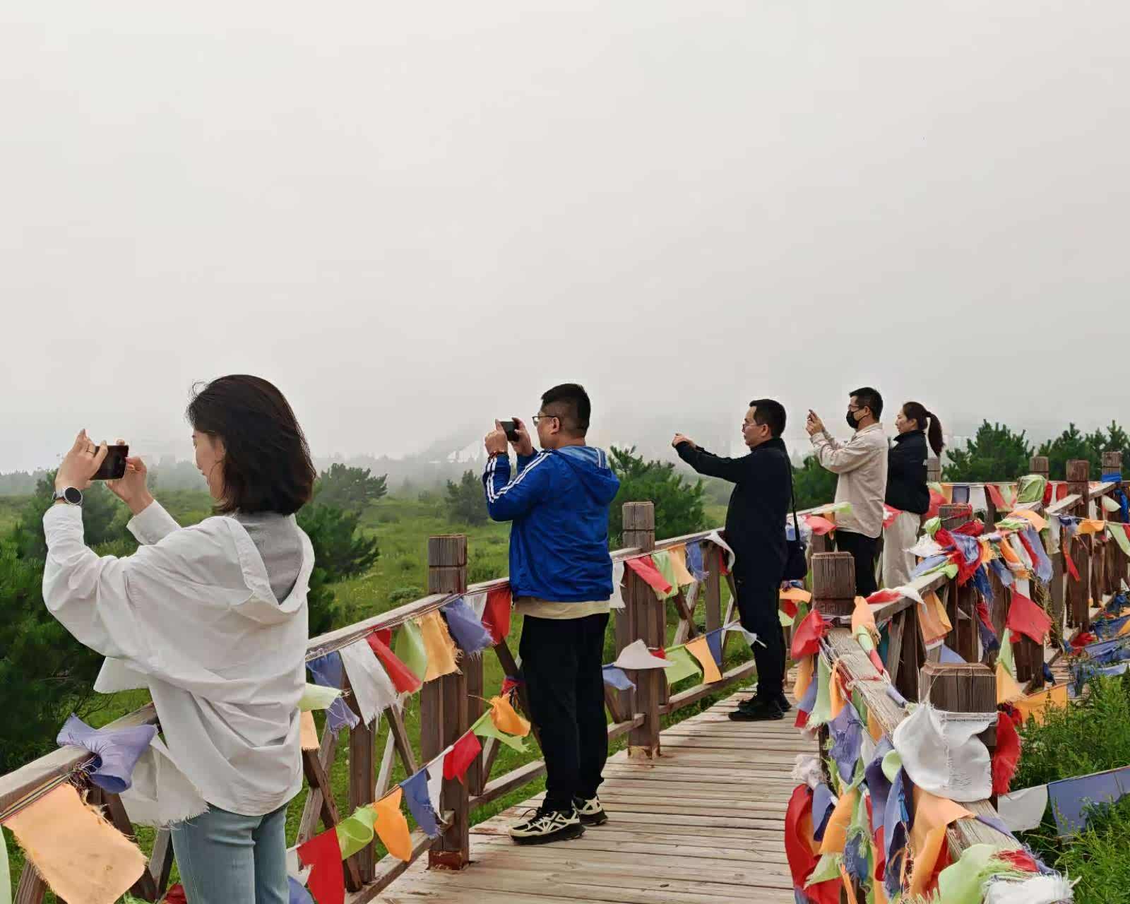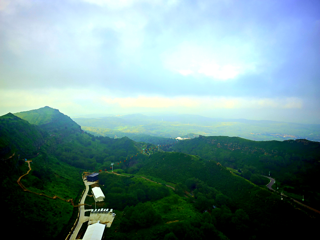 天路西线的路况总体良好,但部分路段坡陡弯急,需要谨慎驾驶。我们按照导航提示,沿着蜿蜒的山路盘旋而上,不多时便抵达了野狐岭生态旅游区。旅游区位于草原天路西段海拔约1617米的鸡冠山,景区门票通票应该是160多(我们是朋友送的票,白漂的