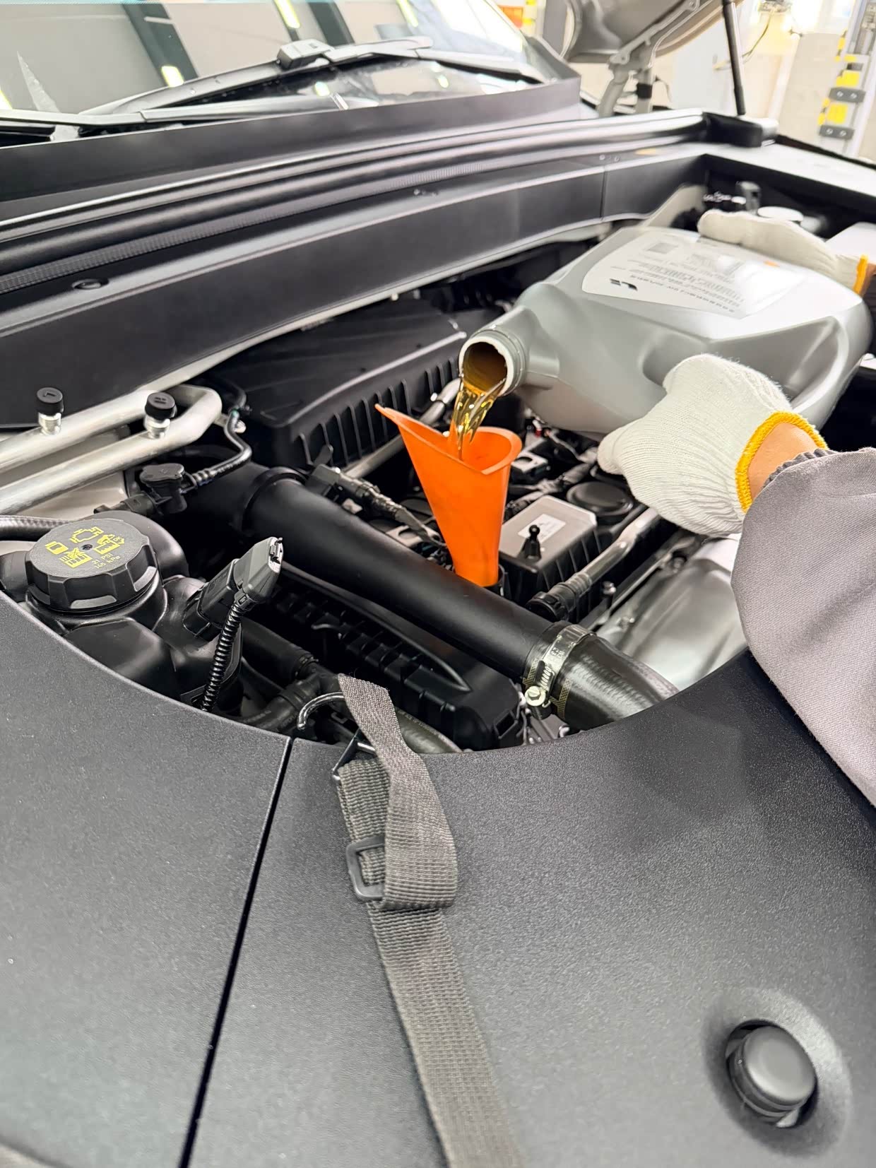 5. 加注新机油:通过机油加注口加入适量的新机油,机油是理想的专用机油,机油是与壳牌合作的机油。