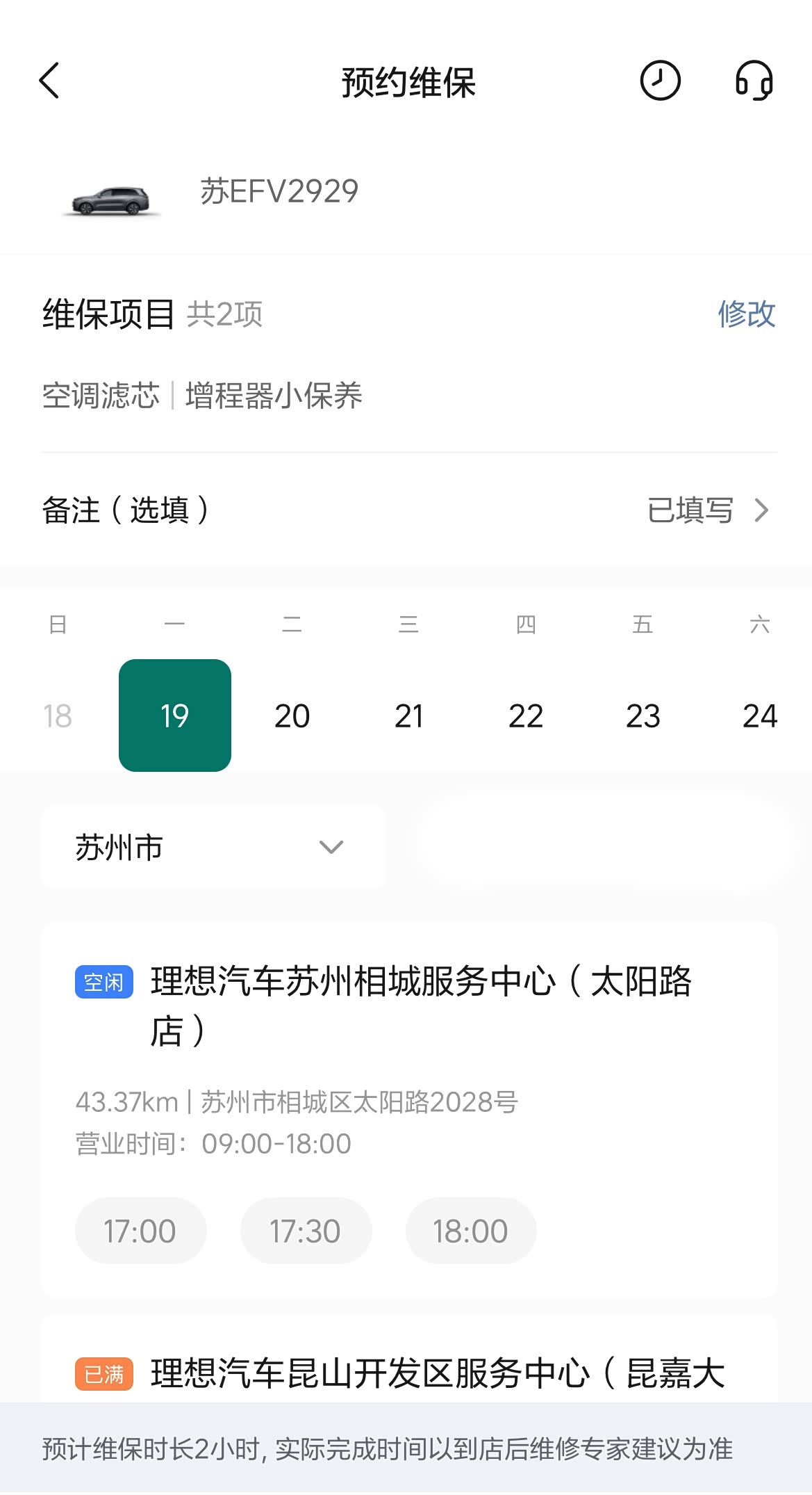 理想针对用户服务还是很贴心的,理想APP上有很详细的记录,比如还有多久时间要保养,还有多少公里要保养,总之让车主不要再费心,到时间或到公里数会提醒,提前在理想APP上预约好了保养日期和到店保养的时间段。