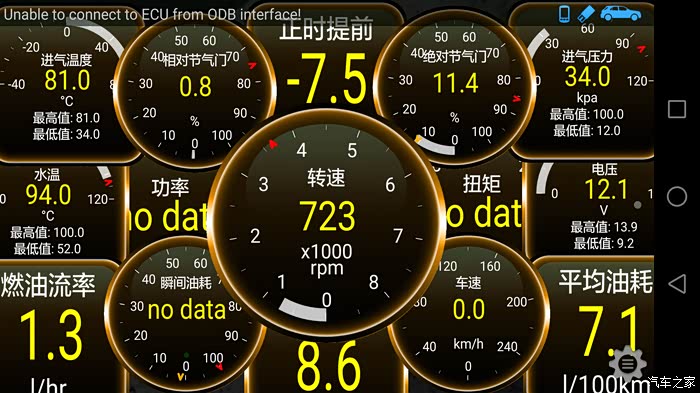 下面贴几张使用其它OBD盒子配合第三方软件的自定义实时仪表截图: