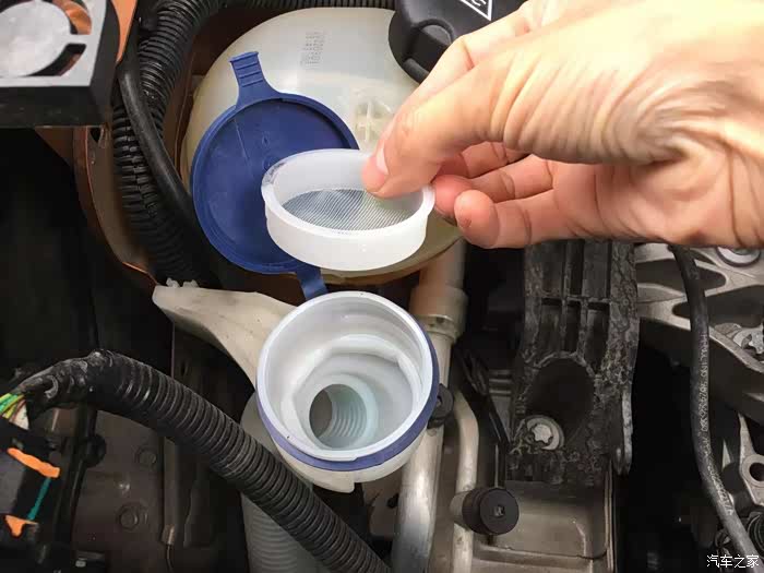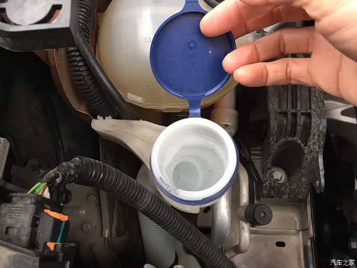 2008的玻璃水加注口这里,居然还有一个过滤网,卡的挺紧,幸亏我的指甲有力,给大家展示一下这个滤网。你觉得这个滤网有用吗?