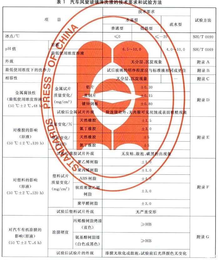 不管是哪种玻璃水,都要经过金属腐蚀试验,橡胶、塑料、油漆的影响试验,具体的要求就不多少了,说多了我也不懂。这个标准中都有明确的要求,我找到了原文,有需要的网友可以留言,我单独发给大家。