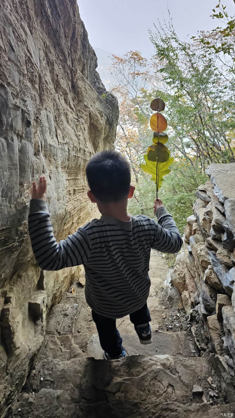 如果说只爬山小朋友可能不喜欢,但你要跟他说是去探险,他一定会喜欢!想办法各种心理建设哄着来迎合儿子!全程没让抱!没说走不动了还算顺利。穿越小山洞可开心了!