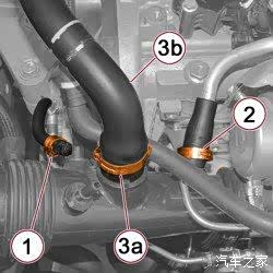 【更正说明】(4S店也一头雾水、没整明白)前几年,4S店告诉根伯(3b)是回气管,所以我一直误以为(3b)是回气管,其实是错的;(2)才是回气管(全负荷呼吸管);特此更正。