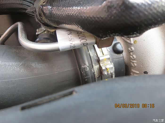 2-8 主进气管与涡轮增压器进气口连接处密封漏气,且因以上2-1、2-2条原因、造成分离后进入全负荷呼吸管的回气中含有过多机油,或许是该处渗漏机油的原因。