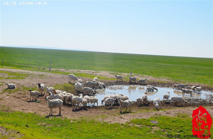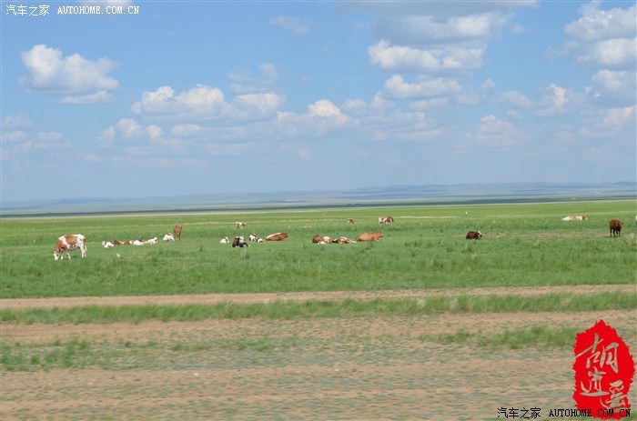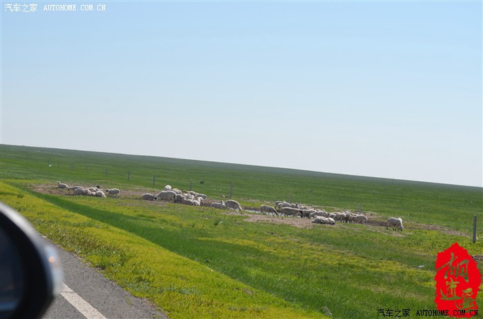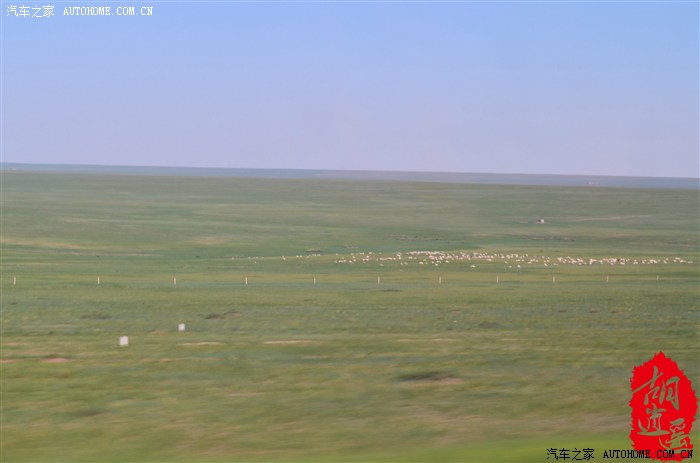 遍地是牛羊啊!大家经过牛羊群的时候,一定要小心,我们的“导游”告诉我们,牛羊急了就往车上撞啊!撞坏了车是小,撞死了牛羊事大!快到内蒙古东乌珠穆沁旗的时候,经过了一个叫硝泡子的湖,湖水上泛着白白的东西,“导游”说,这是个盐湖!