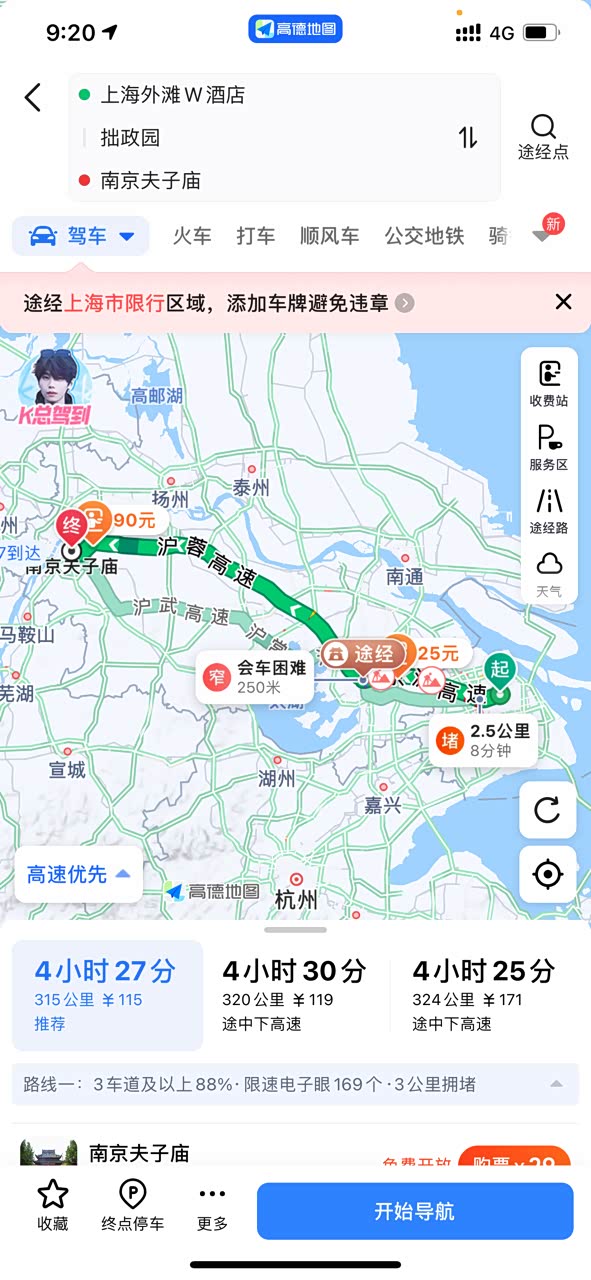 这次自驾游的目的地定在了历史悠久的文化名城——南京,其中重点探访的是著名的夫子庙景区。我们从上海启程,途经苏州,全程约300公里,预计两天一夜的时间,既能充分领略江南的水乡风情,又能深入探索历史文化的魅力。