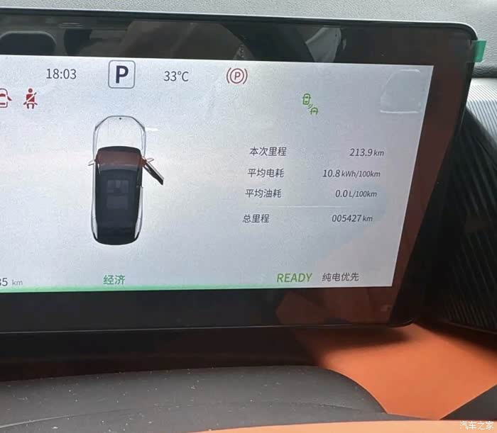 出发前,我把车充满电,仪表盘显示的纯电续航是205公里。这次行程路况比较综合,高速、市区、郊区都有,空调也正常开着,没有刻意去省电。一路上开的也挺随意的,既没有猛踩猛刹,也没有刻意用极致节能的方式驾驶,就是日常开车的节奏。