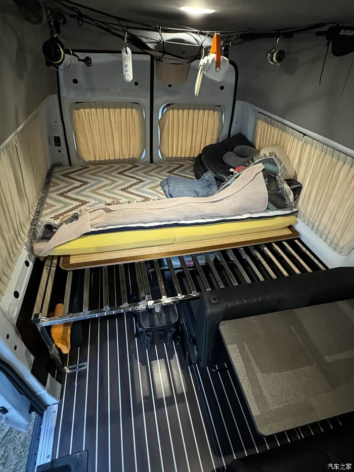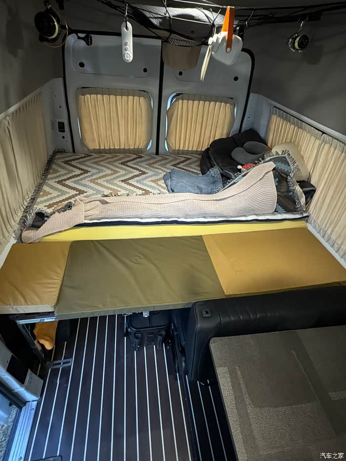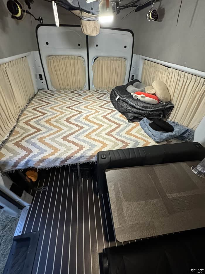 塑胶地板是我们两个人把原车地板拆下来切的尺寸铺上去的,两个人干这个活还是有点吃力的原车地板又重又长。窗帘买了一套鹿皮绒的这个需要打孔安装,但确实很牢固。上车拉手是塞纳同款,