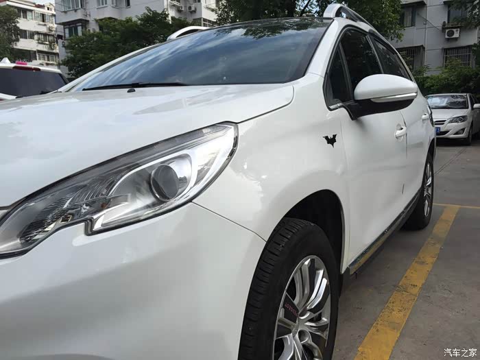 自提车以来已经过去1年半时间了,因为购买时间比较早。想当初因为价格、外观、内饰各方面考虑,曾考虑过其他品牌和车型,但最终因为2008的一则广告,结束了虚无缥缈的选车综合症,从而敲定了2008这款车型,上市半个多月就订了车。经过一系列波折,辗转40多天,爱车终于到了我手里。 虽然2008某些方面确实不够完美,但是2008以法式浪漫设计的内饰、能满足使用要求的7寸彩色触屏,1.3平米的全景天幕玻璃顶、别具一格的蓝色氛围灯、分区式空调、独有的前大灯造型,具有品牌特色的狮爪尾灯、赛车式方向盘、独一无二的飞航式手刹,足矣吸引众多的购车者的眼球。正因为如此,大街上开2008的人开始越来越多,也证明当初购买2008作为家庭用车的决定是非常正确的。 先来说说内饰吧。当时选车的时候得知有棕色彩色内饰和黑色内饰,订车的时候我是想要棕色内饰的,可是过了没多久,被销售告知目前我选的手动时尚版当前只生产黑色内饰,那好吧。既然喜欢2008且自己订的是白色的,黑白配也是长久以来永不过时的经典搭配,那……黑色就黑色吧。中控部分自一侧向另一侧一通到底,简洁明了。表面呈碳素类斜棋格状花纹,手感相当的舒服,中间设计为凹陷,嵌入7寸彩色触屏,相当完美的搭配。镶嵌的屏幕高度刚合适,一点都不影响驾车视线。内部座椅原始是织物面料的,当然也有人愿意用真皮座椅,或许会显得比较高档。我么,不喜欢冬天坐上去冰凉冰凉的,夏天热的烫屁股。遵循原汁原味,依然选择织物座椅,个人觉得其实也挺舒服的。内侧车门把手处,虽然没有太多的科技感,但总体感觉也是相当的简洁明了,线条柔和,隐约还显示着一个字母F,也许就是代表这发过的意思吧。飞航式手刹,这方面照我所了解的,上市时应该是属于绝无仅有的设计理念了吧。通常来说一般都是手掌握杆,大拇指按按钮,2008的飞航式手刹,却不走寻常路,手刹收放犹如开飞机提升或下降的动作,物如其名,飞航式手刹。同时,操作时的动作就像雄狮站立在草原上那样傲视一切,又和狮爪尾灯相互对应,相当好的设计理念和用意。 时尚版和领航版配备有7寸彩色触屏,怎么说呢,对于2008这款车型,其实这尺寸刚刚好,毕竟2008不是大中型车型,6寸太小家子气,8寸又太大不符合2008的体型。按键不多只有3个,简单明了,各方面操作都能运用自如。说到蓝色氛围灯,有仪表盘氛围灯和全景天幕玻璃顶氛围灯两种。仪表盘氛围灯本还以为所有配置都有,经了解之后得知,只有领航版才能选装,并非标配。不过天幕玻璃顶的氛围灯时尚和领航版是标配,天幕玻璃顶两侧全覆盖式的蓝色LED氛围灯,灯光不刺眼,很柔和,夜间行车时做在车内,给人的感觉很舒服很惬意,也许这也是法式浪漫的另一种体现方式吧。 触屏下方的自动分区空调,设计感其实也是相当的简单实用,空调屏幕和按键的位置,恰好就在档杆前方,我的是手动挡,收几乎不用离开档杆就可以按到空调的按键了。前后区分开设置温度,各方位风向都能按喜好和需要设置,考虑很是周到。 说到灯光,原配的灯泡亮度不怎么给力,太暗了。不过外形方面在当时却是独一无二的,圆润的造型,凹陷式的设计算是比较精巧的。也是我喜欢2008的一个比较重要的原因。车尾灯的设计也很独特,狮爪式LED等,2008的车主远远一看就知道是2008了。 赛车式方向盘,这个理念真的是不错。毕竟我也开了有一年半多的时间了,方向盘很小,转向很准确。6点方向的镀铬装饰是我自己加的,领航是原装的,很美观。或许几年后换车还是会选标致,其中一大原因应该就是这赛车式的方向盘吧。