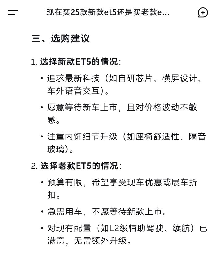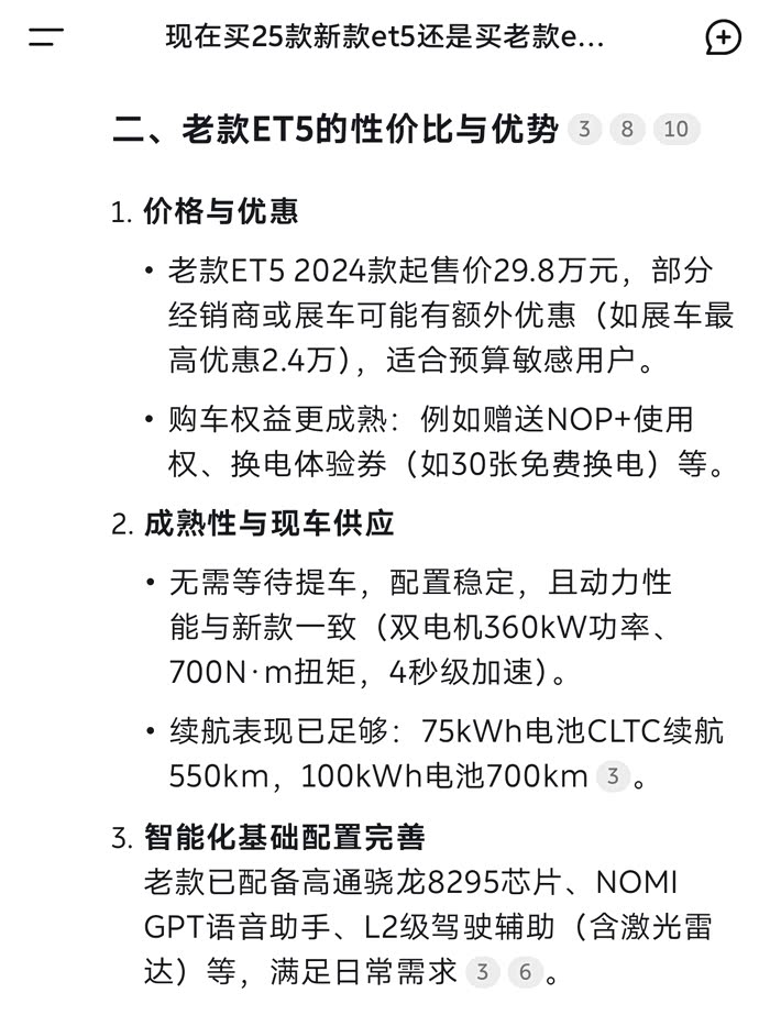 作为ET5车主,当然最关心ET5有啥新变化~于是,我问了DeepSeek