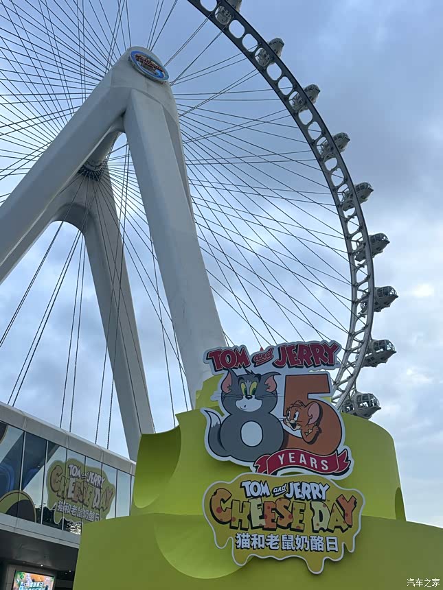 这里有亚洲最大的摩天轮,128米的摩天轮霸屏视野:虽然没坐(排队2小时劝退),但站在底下拍照也够震撼!背景是湛蓝海面+跨海大桥,货轮慢悠悠开过,手机随便咔都是大片。