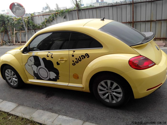 这辆黄虫的车门贴纸还挺有个性的,挺好看的,忍不住多拍了几张