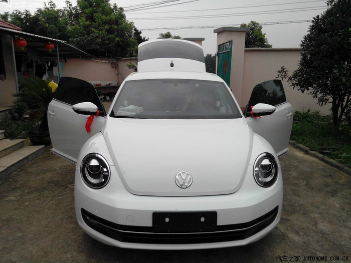 第二天正好是周末,把儿子送到爸妈家,我跟老婆直奔4S店看车,第一个来到进口大众4S店,进门就看到2014款甲壳虫停在里面,经过该款的甲壳虫我觉得教上一代更漂亮,当然车子肯定是越来越漂亮的。尤其是无框车门和全新的造型,总有一种小跑车的感觉,不像上一代车头车尾傻傻分不清的感觉,老车友别骂我,只是个人感觉而已。内饰简单实用,由于我的车也是大众,早就习惯了大众的内饰,所以也没什么感觉,直接要求试驾。因为是买给老婆的,所以老婆试驾,销售坐副驾,我坐后排,顺便也能感受下后座空间。话说1.2T的动力女生市里开开足够了,反正比我的5速手自一体变速器换挡平顺多了,而且没我想象中的肉,后排空间也出乎意料。行,那就回到店里谈价格吧,大家都很爽快,一个小时就下订单,交了2万订金。一个月后提。等车的过程就不说了,总之各种心焦啊。下面来看图吧,