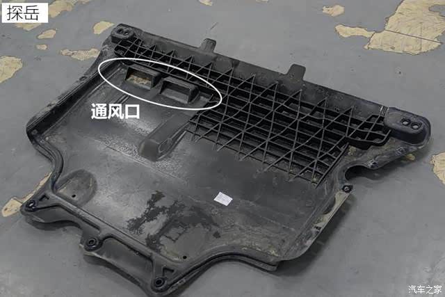 将两台车的底盘举升起来发现,探岳和锐际在车底都安装了比较全面的护板,更平整的车底会带来更低的风阻系数,同时底漆也被很好地保护了起来,减少了磕碰掉漆而易生锈的情況。拆下来两车的护板,我们对比看一下两者的材料,探岳的护板为树脂材质,机舱底部的护板非常厚,而且在发动机侧设置了两个通风口,能对发动机舱内起到一部分降温作用。锐际车底的前部、中部都采用了玻璃纤维材质路面上飞起的石子敲击上去的声音会更让人舒服一些。