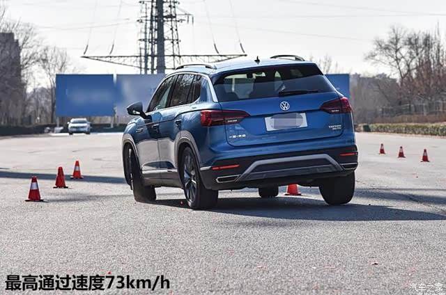 实际开起来,在麋鹿测试中,老司机把两台车都开到了极限,探岳的通过速度为73km/h,而锐际的通过速度更高一些,达到了75km/h左右因此,让两台车的底盘风格更明显地展示了出来。对比结果很明显,探岳的底盘更偏舒适,转向手感更轻盈车辆左侧悬架被压缩,能感受到随着压缩行程,悬架有”从软到硬'的变化。