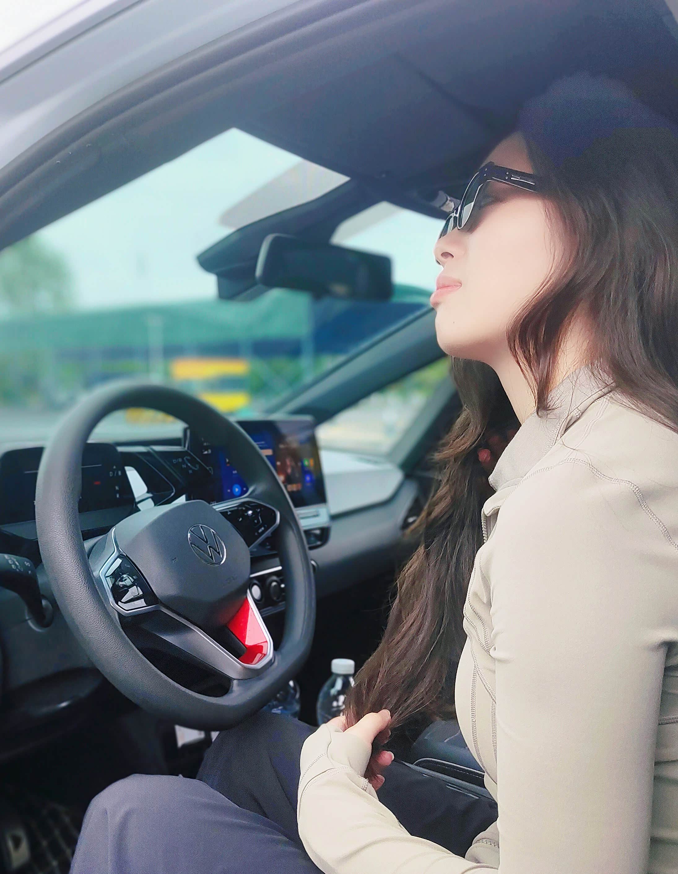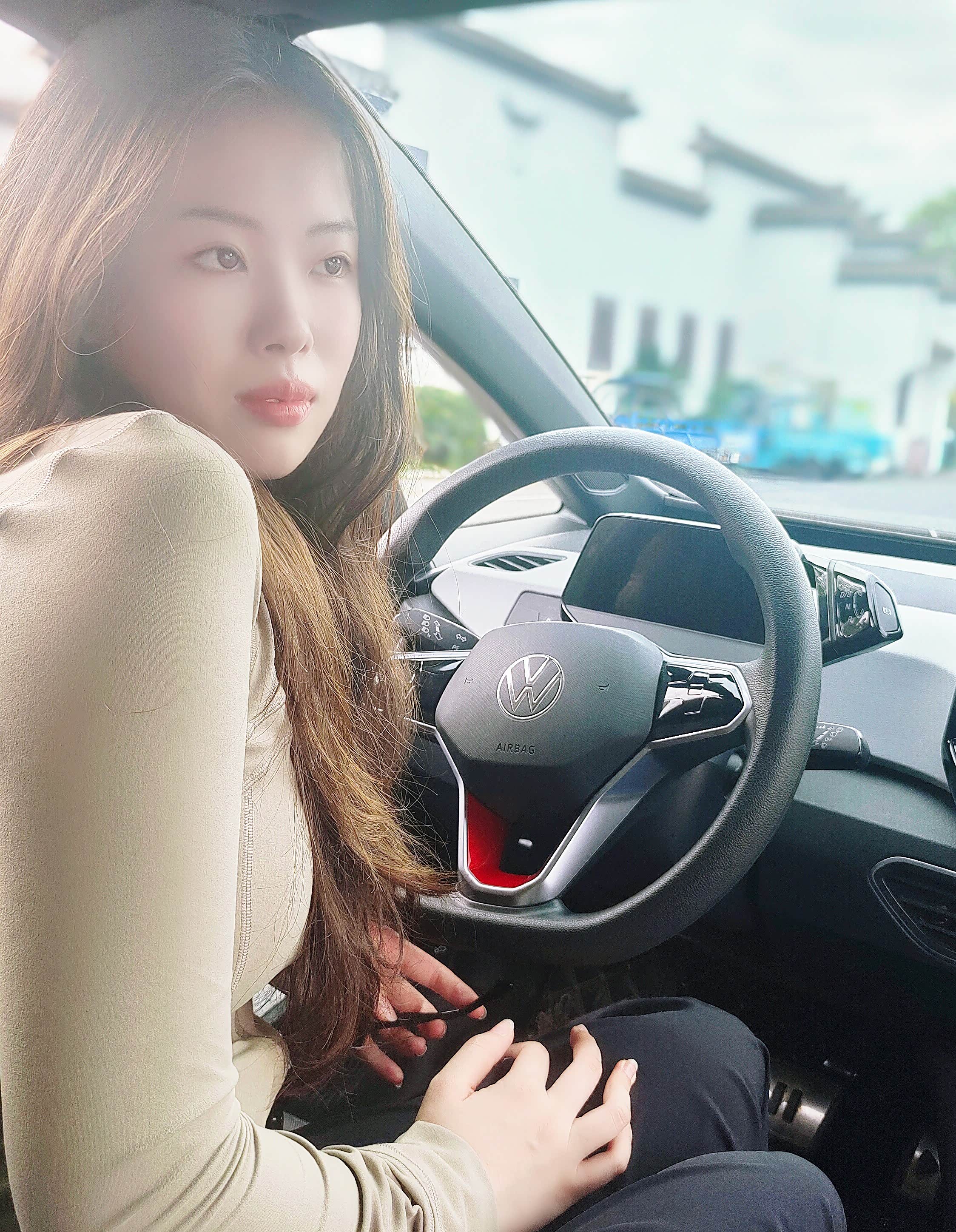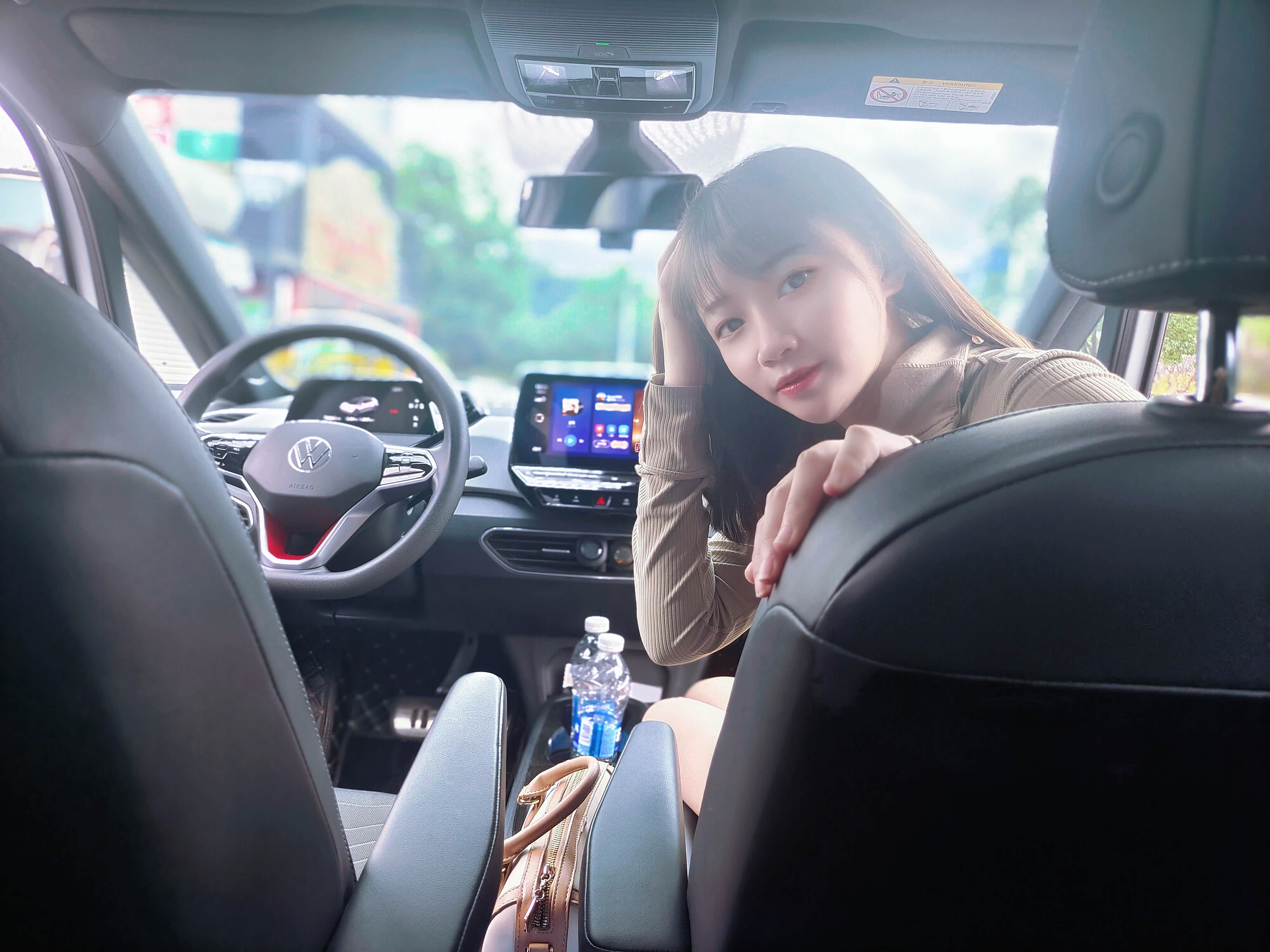 高个子的媳妇时而站在车头,时而站在车尾,时而坐在主驾,她每一张照片眼神中都透露出一种自信与洒脱,完美的身材与ID.3那流畅的车身线条相得益彰,拍出的照片充满了时尚感与力量感。而娇小可爱的媳妇则坐在车内,透过车窗露出甜美的笑容,眼睛弯弯的,像月牙儿一样,她在车内摆着俏皮的动作,与ID.3的内饰融为一体,拍出的照片则尽显温馨与可爱。话不多说,请大家欣赏由我亲自拍摄的大片: