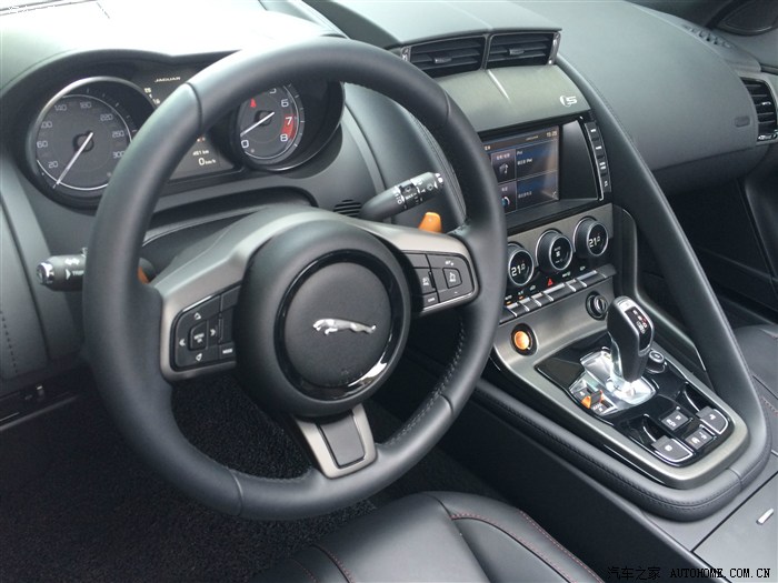 d. 黑色六角铝的面板: 最开始看到这个配置的时候我是不满意的,因为跑车总是想要碳纤维内饰板的嘛,显得更加运动,更加性能一点。但是看到现车以后,完全颠覆了我之前的想法,铝的内饰板也是很好看的,而且摸上去很舒服。好像在其他品牌的车上很少有看见用铝的饰板,这点捷豹还是挺独特的。