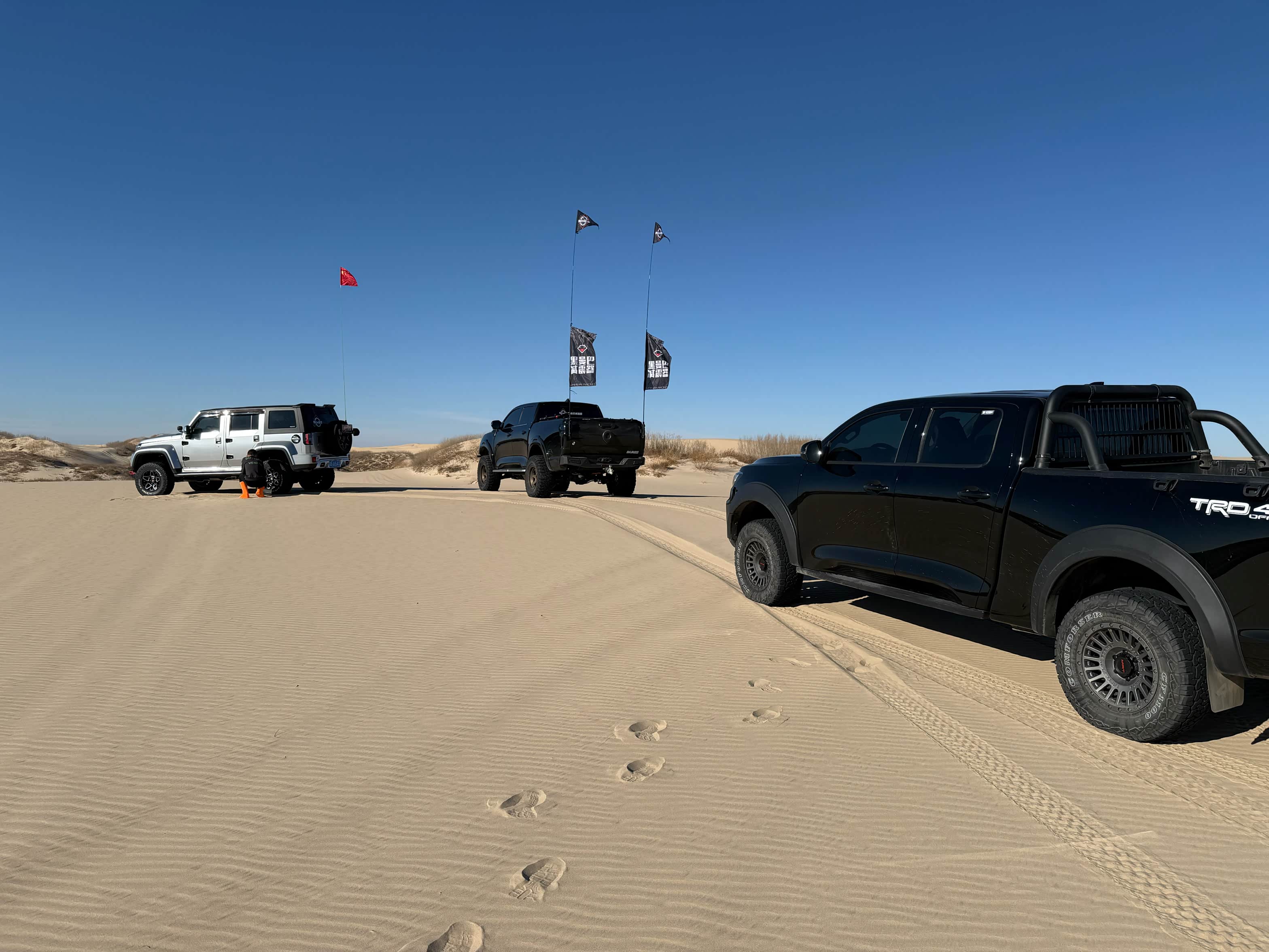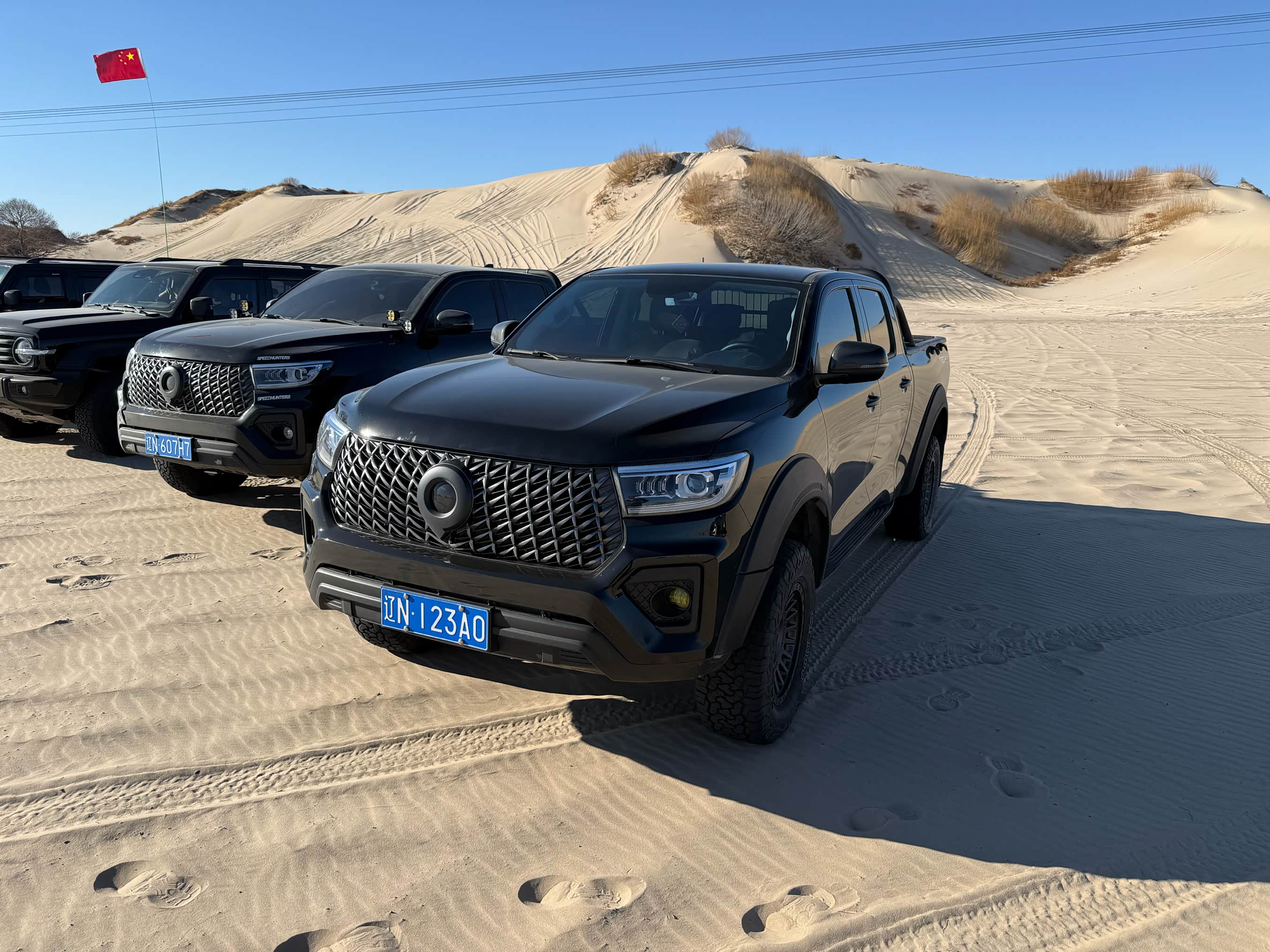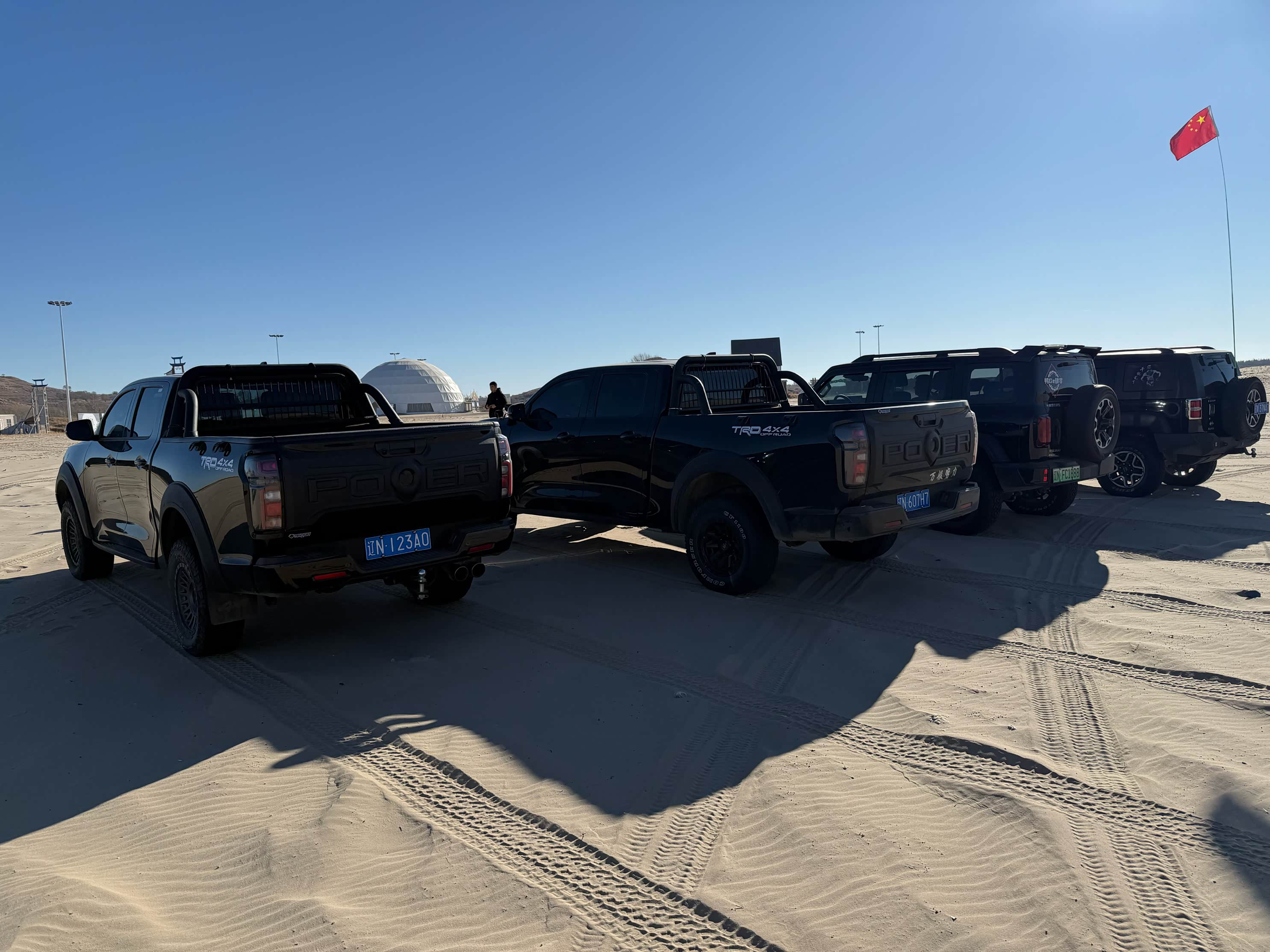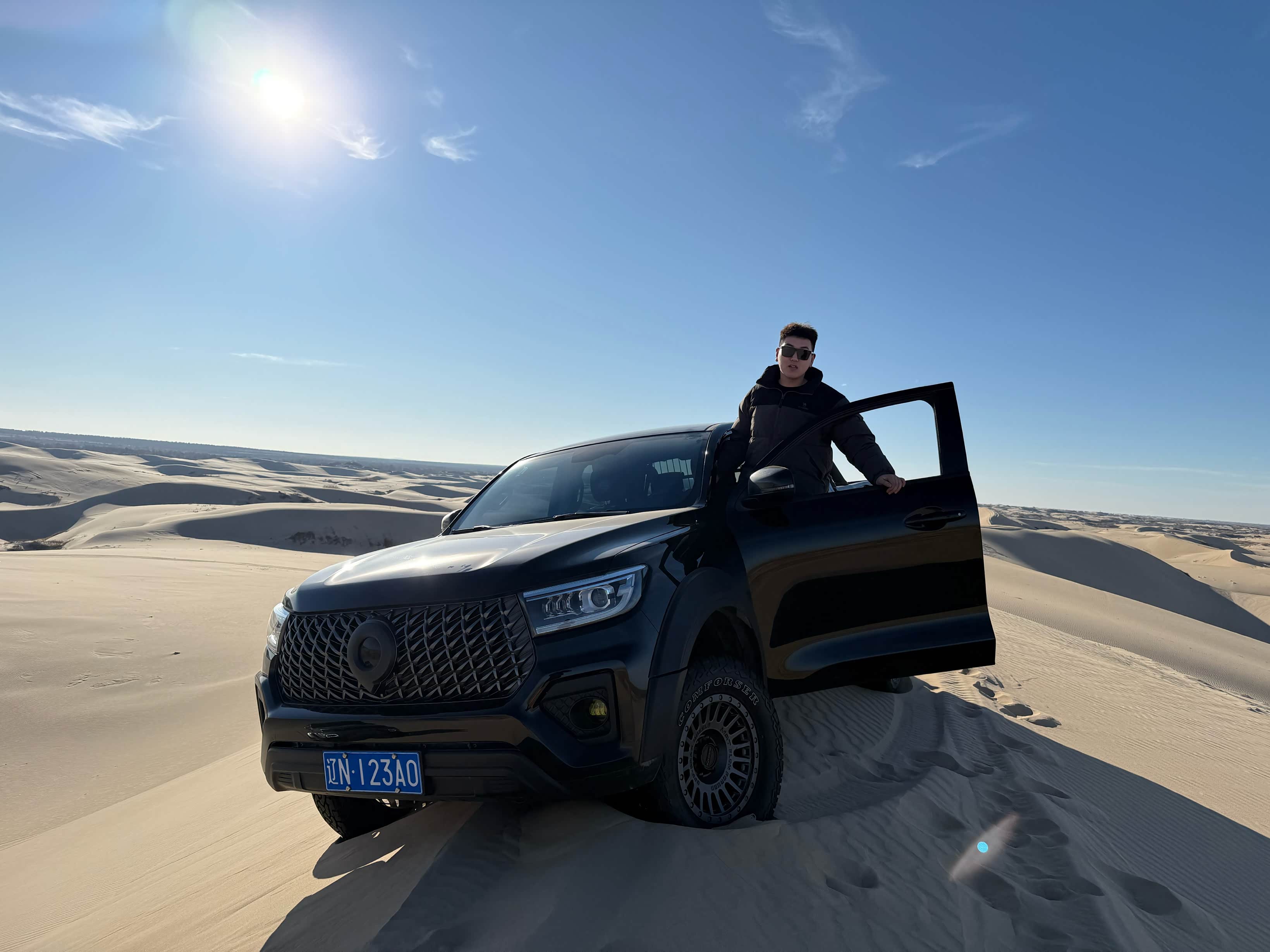 沙漠越野,减震和抓地力太关键了!队长是黑曼巴减震器经销商,不少车友都改了黑曼巴减震,我的车也改了轮胎轮毂和减震器,碾过高低起伏的沙丘,颠簸感被过滤得很到位,车身姿态特别稳,不会出现大幅晃动。队长还时不时在对讲机里分享沙漠驾驶技巧,比如冲坡要稳住油门、过沙坑要减速慢行,跟着大神学习,不仅玩得尽兴,还涨了不少越野知识。
