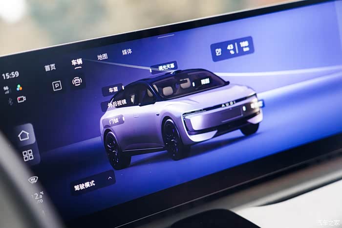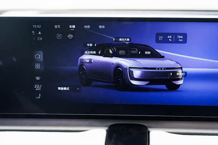 坐进车内,这科技感可以说是直接拉满了!完全颠覆了我对于奥迪的认知!一块27英寸中控副驾屏+12.3英寸仪表屏+两块7英寸电子后视镜+抬头显示组成了车内的显示体系,乍一看还以为坐进了哪款概念车的内部,确实很像小时候看科幻片里未来汽车的模样。屏幕内置的是高通骁龙8295芯片,搭载AUDI OS操作系统,使用起来非常顺滑,响应速度也很快。并且可将关键信息优先显示于顶层菜单,配合直接触控手势可实现迅捷操作,这点还是很方便的。而且整个中控屏的娱乐与应用生态还是非常丰富的,同时还支持CarPlay、HiCar手机互联,这在现在新能源的车型里还是比较少见的配置