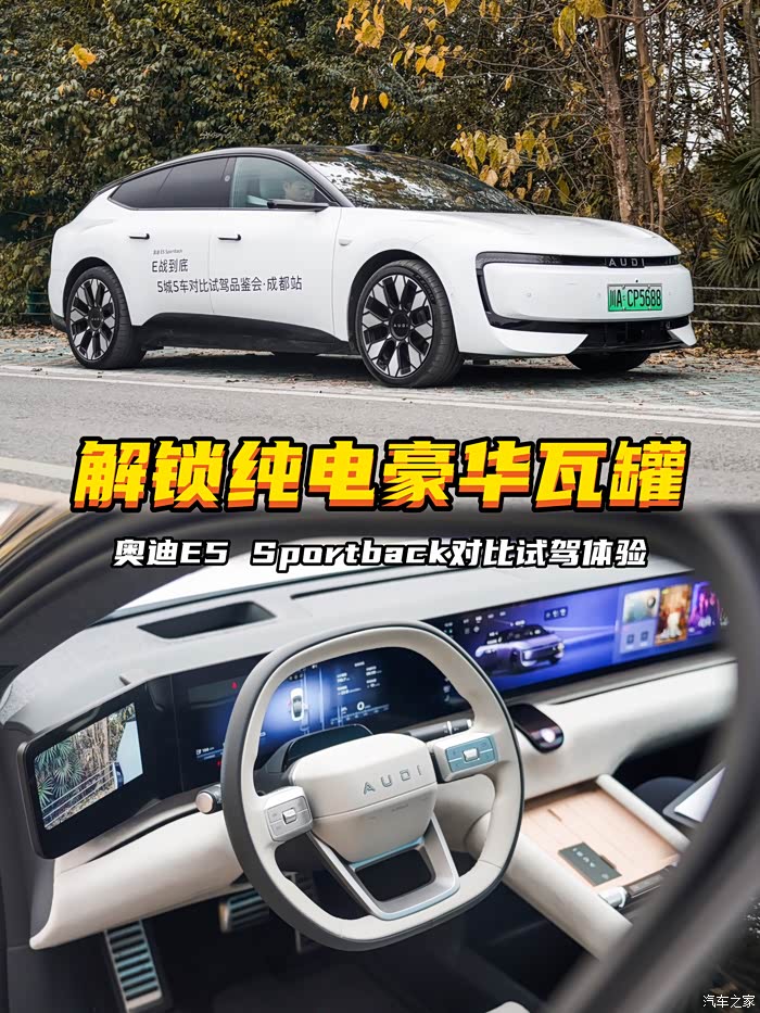 通过今天的对比试驾体验,奥迪E5 Sportback还是给我留下了非常深刻的印象。它既有原汁原味的德系驾控,又有现在中国新能源品牌都在卷的智能辅助驾驶、车内科技配置,所以整体优势还是非常明显的。那么看完本期内容,如果有和我一样对奥迪E5 Sportback感兴趣的朋友,可以到你就近的体验中心好好看车了解一下!成都地区的朋友我比较推荐“奥迪之城成都万象城店”,之前去过一次,服务很nice,推荐给大家~