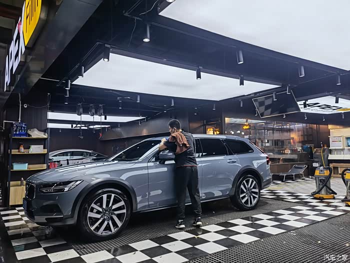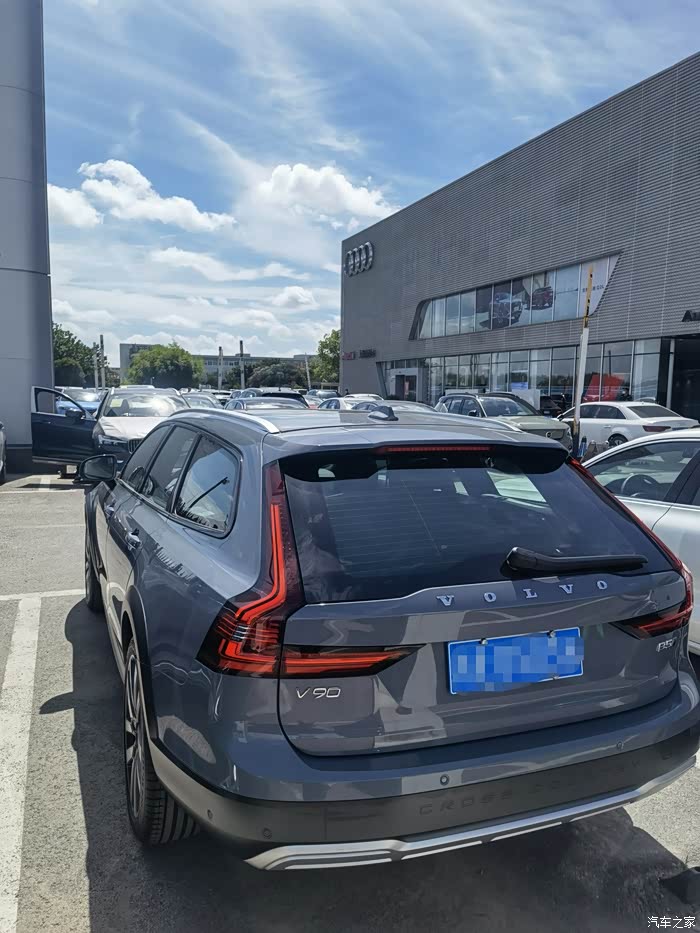 到4S的停车场,初见了我的包裹得严严实实,仿佛制作成木乃伊一样的V90CC,静若处子停在车堆里,好似千里马静静的等待伯乐主人的来临。进口车才有这个“白大褂”待遇,远涉千里,当然得保护妥当。