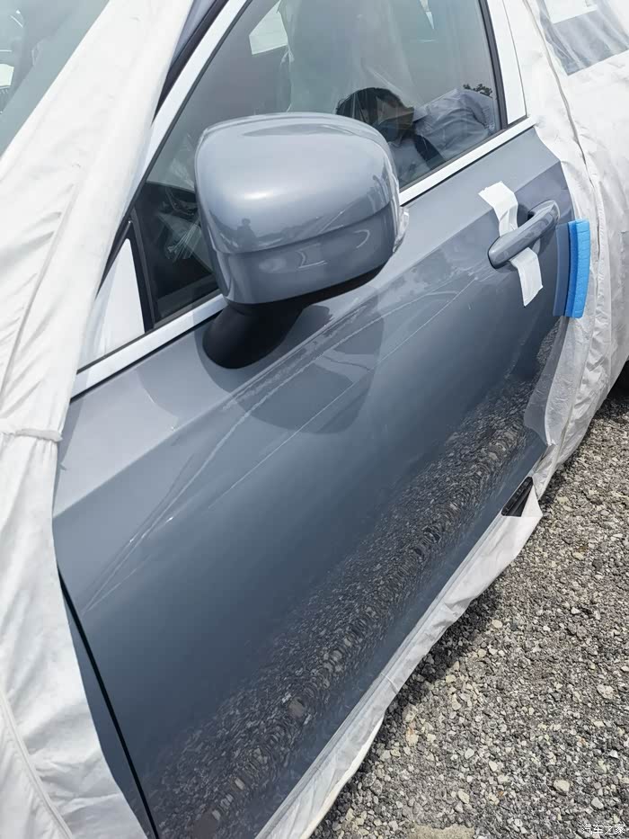 拉开主驾门那边的拉链,露出了闪银灰,是灰,不是蓝。。。