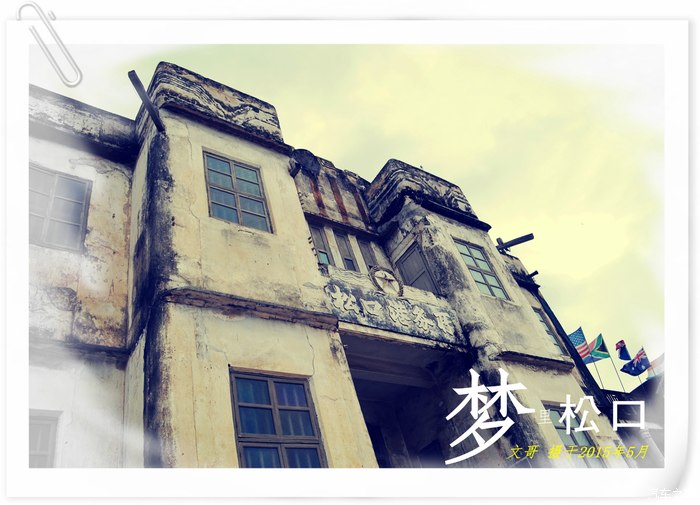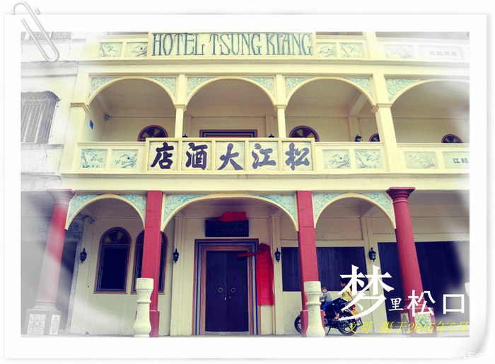 5、正对码头的是松口老街上的松江旅社,四层高的洋楼楼面上“松江旅社”的中英文塑字依稀可见,它曾是梅州地区最早、最大的旅店。昔日梅州地区的华侨出洋谋生或归国返乡多在此投宿,与“火船码头”共同见证了华侨背井离乡、远涉重洋的悲欢离合。