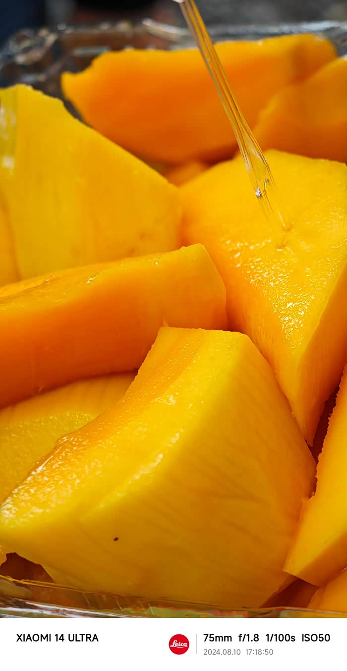 来块芒果,色泽诱人,味道不错,自然熟的,非常甜