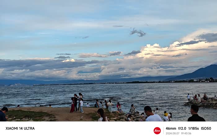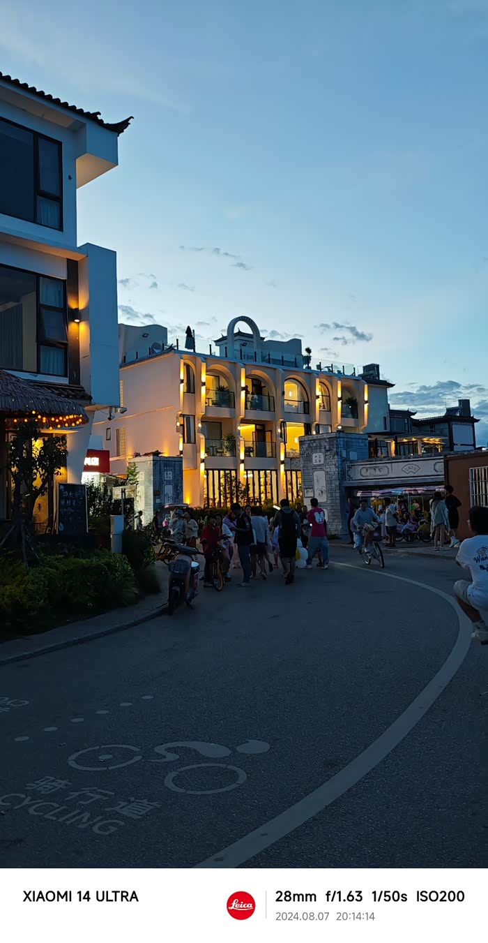 晚上8点,天空依然挂着一丝霞光,海边散步的人多了起来