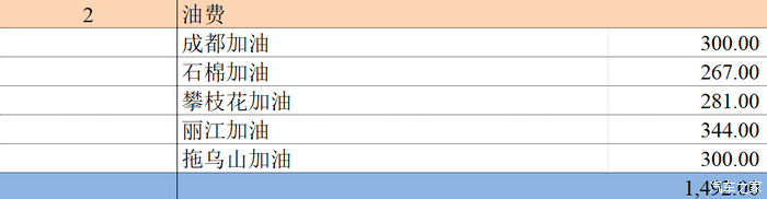 最后的最后,就是本次的路程及油耗,成都-丽江,单边835公里,算上去大理这些,抛着算,1200公里,丽江回成都,算1000公里,。路上一共加5次油,其中有两次加的是95号油。最后一次加油后,回到成都,还有500公里的剩余油,油费一共1492元。