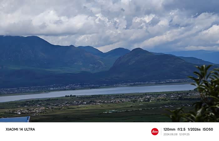 上午10点多出发,快到丽江时的第一个服务区,休息一下,远处有个大大的湖泊