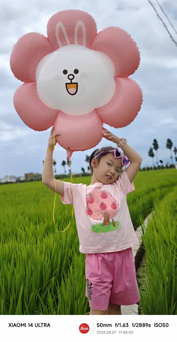 女儿不知道哪里去借了个气球,还真搭配