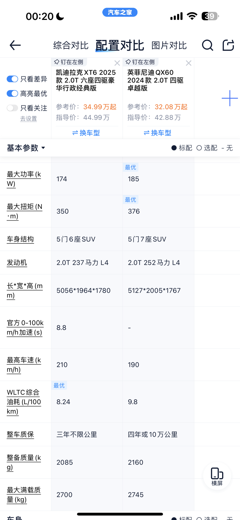 那么这两个车对比,英菲三围更大,更重,但是这俩车动力一样,都很肉,xt6 零百加速8秒8,英菲252马力也是这个动力水平。那么英菲整车带隔音玻璃,光隔音棉就有17公斤,是非常静音的一个车,预算卡在这俩车上的朋友建议你去看一下英菲。好了,目前这俩车价格基本差不多,那么无论你选择谁,自己喜欢就好,我是别克小菠萝,关注我,买车前多打听,别买贵了!