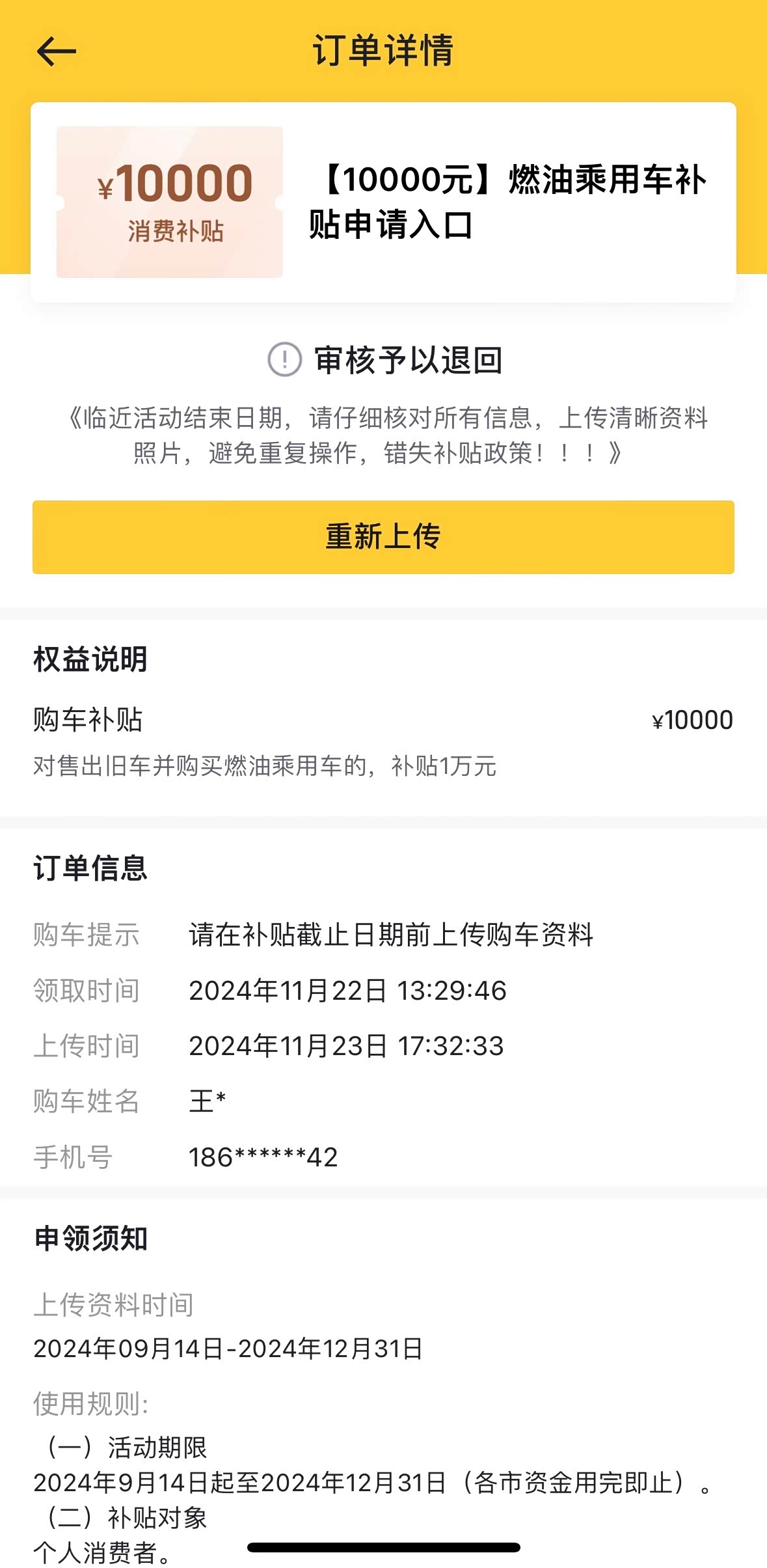 因为12月底置换补贴就要结束了,所以急着要现车,,毕竟提交资料,政府审核还要一些时间。我已经提交了一个月了,还在还没有打款成功。11月23日提交的,24日初审通过,25日复审通过,结果12月16日退回了。又重新提交资料审核了。