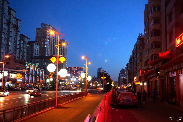 让出租车送我俩到***饭店吃晚饭,之后走回酒店的路上夜景。