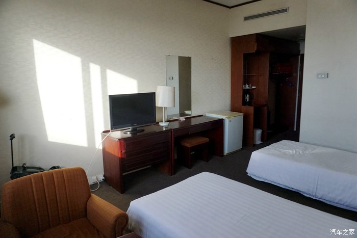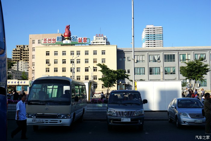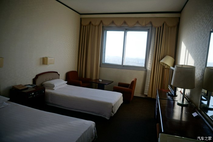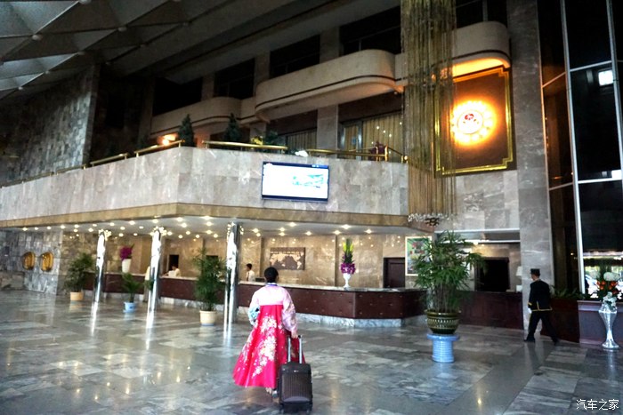 朝鲜青年旅行社的导游——韩朵朵姑娘穿着民族盛装,在站台迎候。带领我们很快就从外宾出口出去,上了等候的面包车,不到二十分钟,就把我们送到下榻的羊角岛国际饭店,入住43楼的房间。