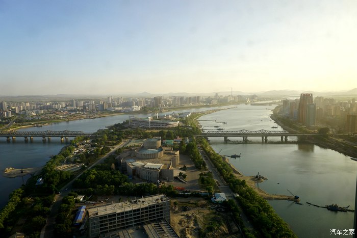 14:50总算到了丹东火车站前,到丹铁大酒店里的旅行社交了护照、照片和参团费。入住预定好的房间,睡一觉后,去江边走了走。