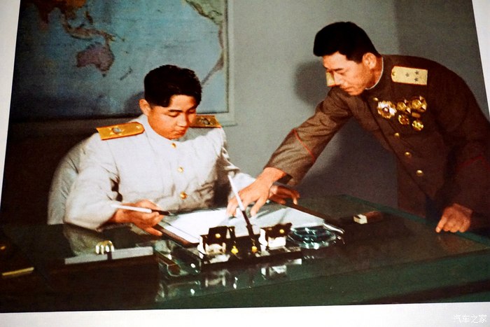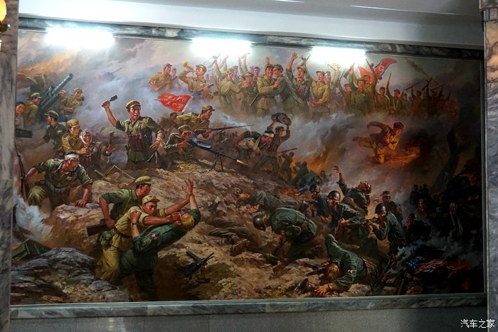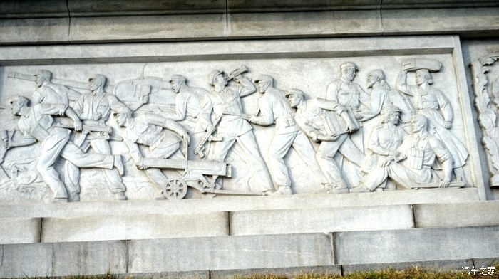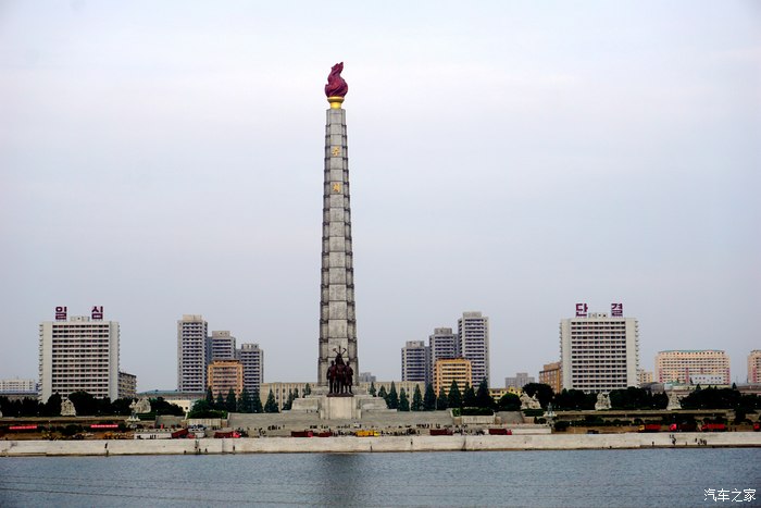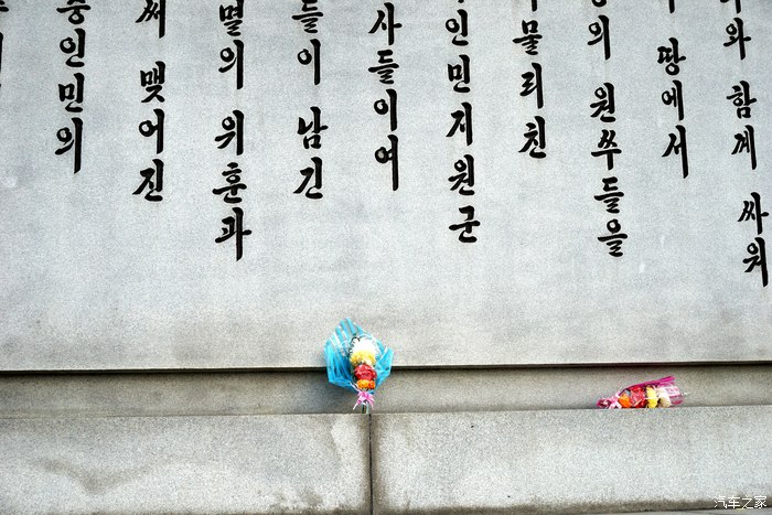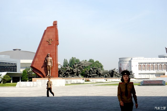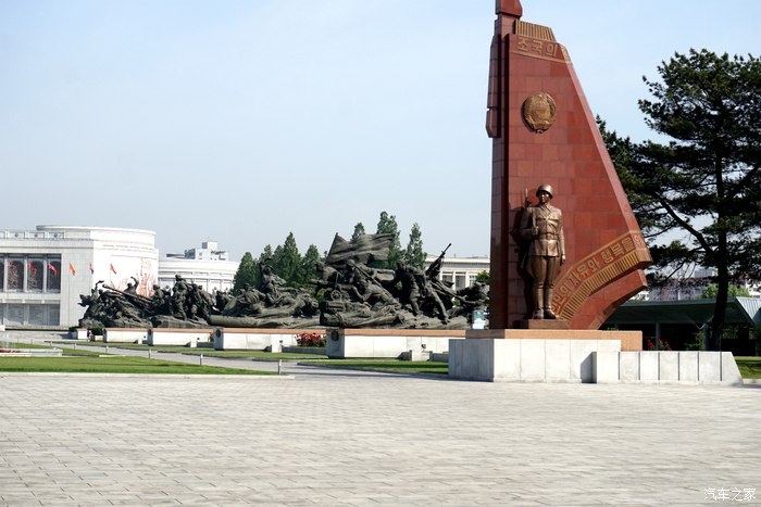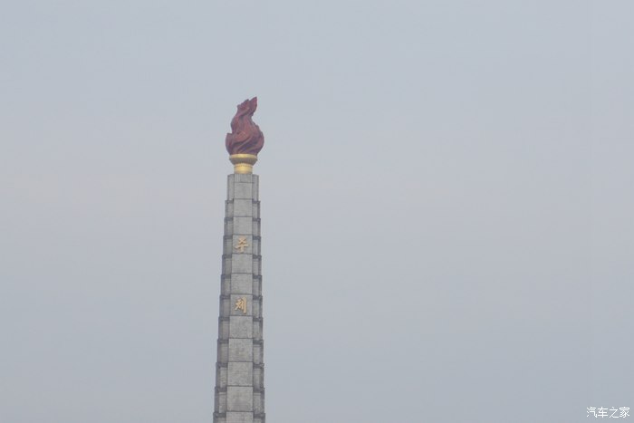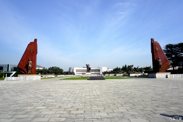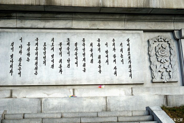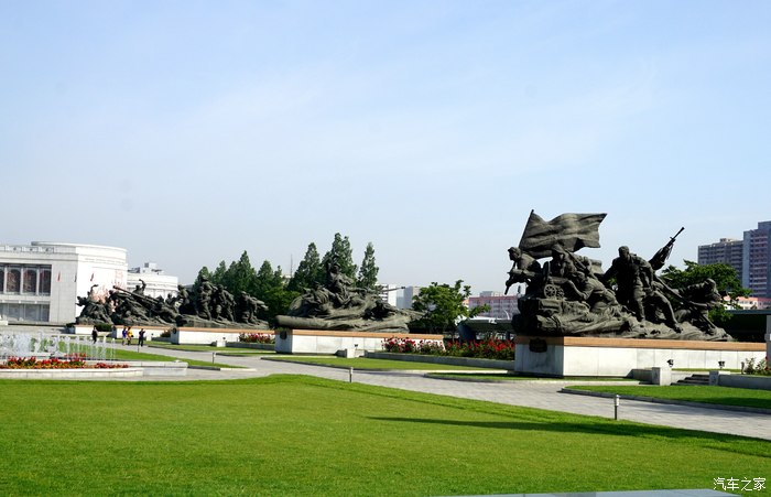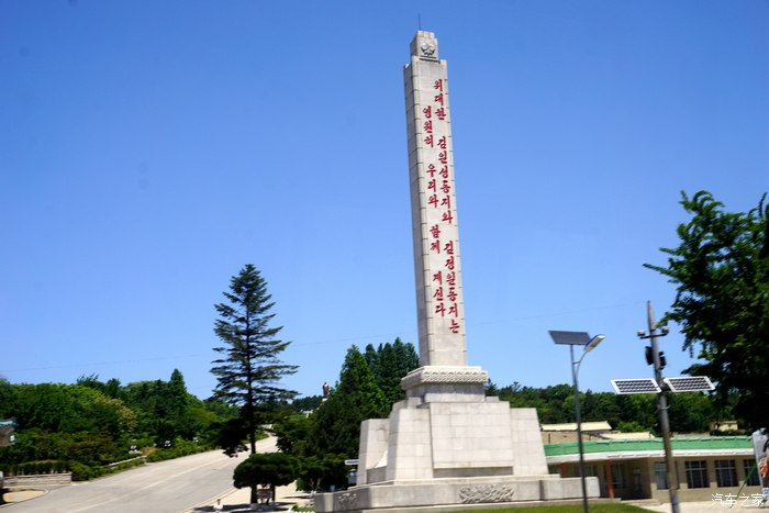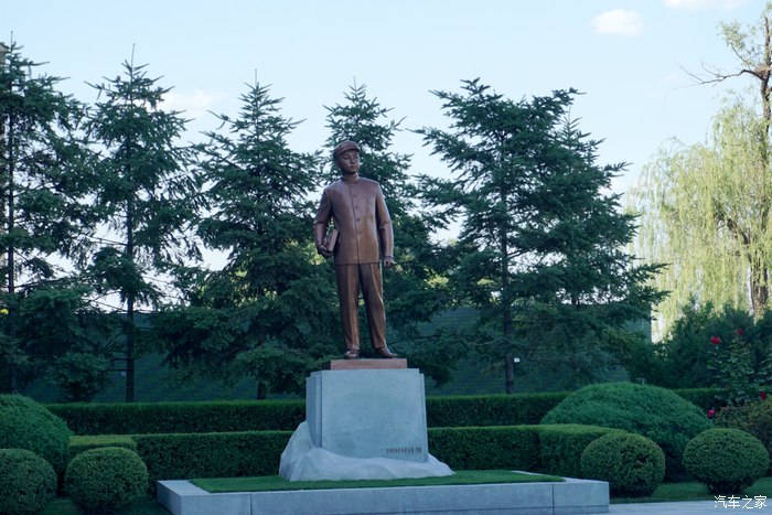 雕塑旗帜上文字的意思是“跟随着将军千万里”。(朝文是请女儿的同事给翻译的,谨在此致谢!)