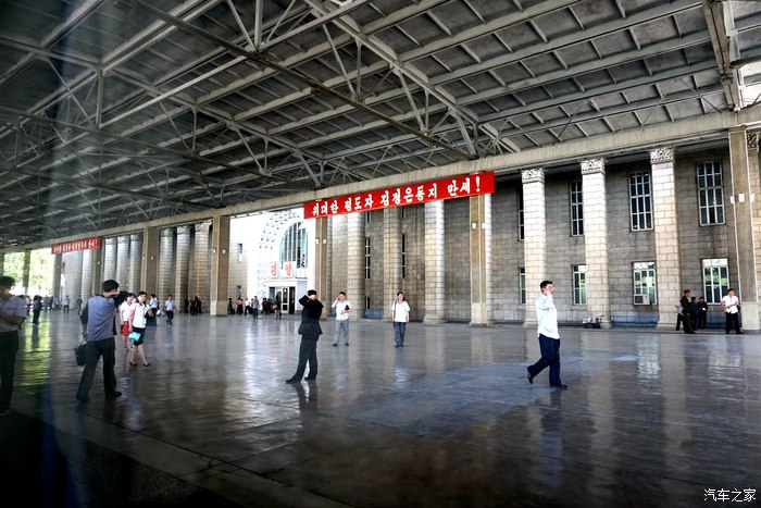 8:20在酒店大堂集合,走去酒店旁边的火车站,上二楼办理出关手续后候车。检票时,旅行社送站者说:让携带许多行李的朝鲜人先走。那些人都推着堆满了货物的行李车,和我国八十年代,国人从国外归来时的情形是一样的,可见朝鲜确实物资匮乏呀。