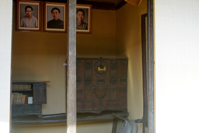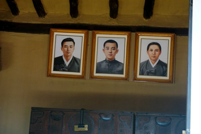难得一见的与两位已故领袖并列的画像,是朝鲜尊奉为"国母"的金正淑,是金日成的第一任妻子;金正日的生母;现任朝鲜第三代领导人金***的祖母,1949年仅32岁就谢世了。