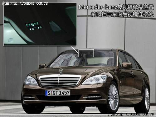 奔驰车所安装的夜视仪有所不一样,属于近红外,是以激光光束波段的光线成像,器件可以感应成像。这种图像为黑白色较清晰,能清楚看清人的面部,透雾能力也很强,分辨人、物然后出发出警报。