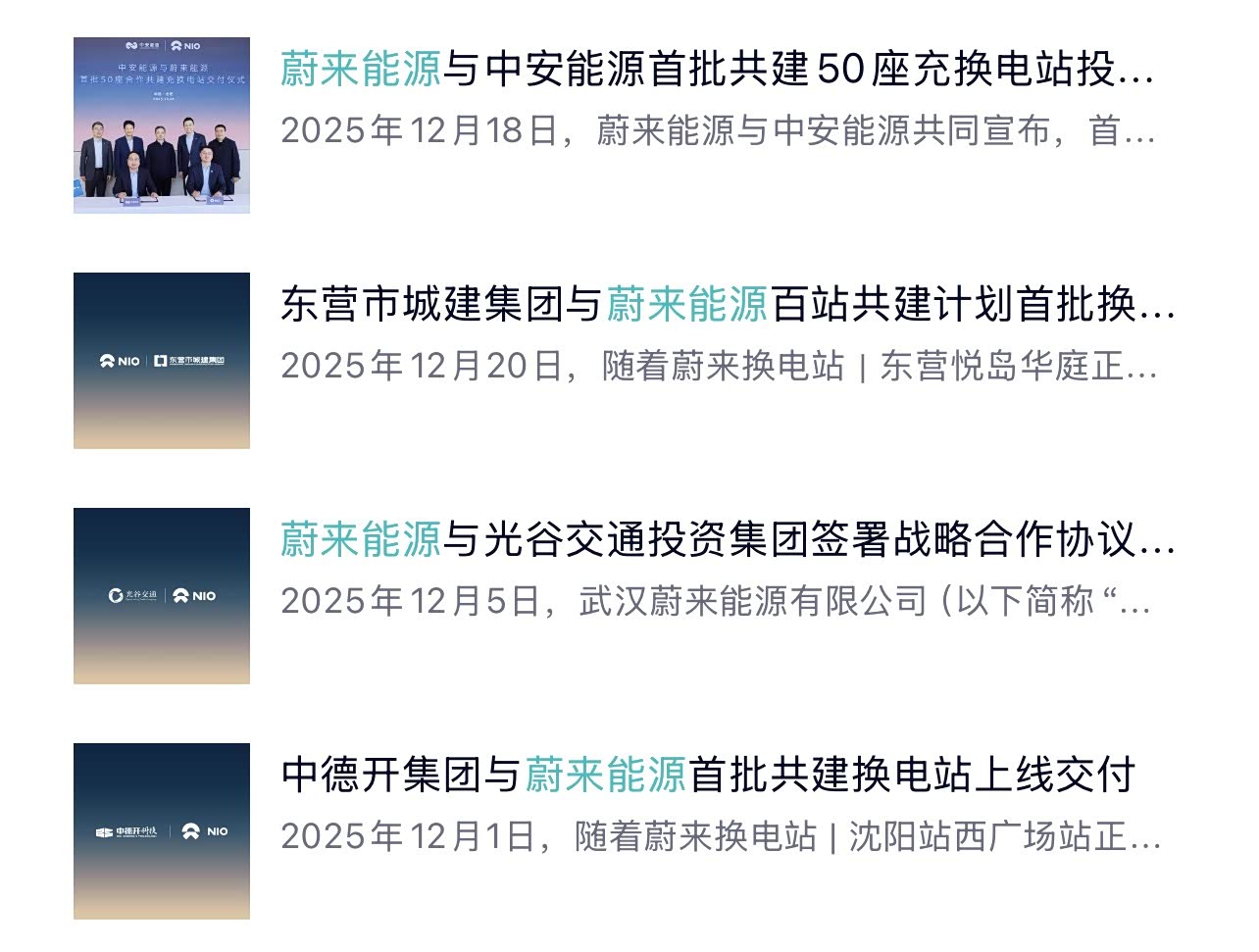 马上年底,蔚来能源接连放大招。从12月1号到18号十几天时间,接连跟中德开、光谷交投、东营城建和中安能源四家公司签署合作协议或首批座合建充换电站上线。